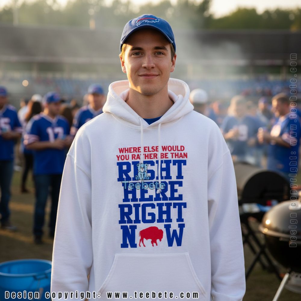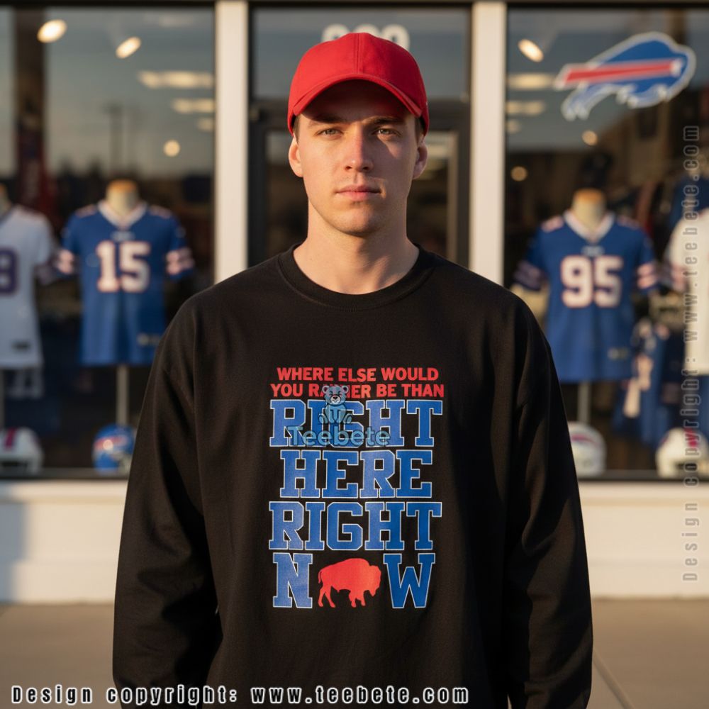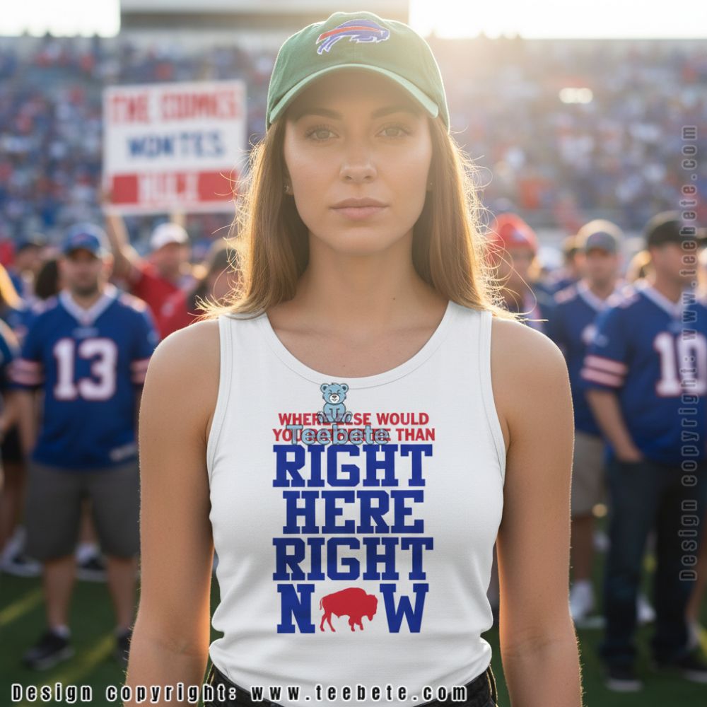 An eye-catching display of team spirit, this Right Here Right Now Buffalo Bills Shirt is perfect for any enthusiastic fan. The design features a dynamic layout with bold graphics that highlight the Buffalo Bills’ iconic elements, skillfully integrated against a rich backdrop. Vivid colors clash and complement in harmonious contrast, ensuring that the shirt stands out. Utilizing a full-coverage printing style, intricate designs flow seamlessly across the fabric, making it a striking addition to any wardrobe.