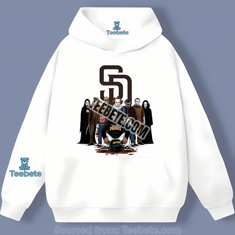 Unleash your inner baseball fiend with a touch of spooky fun this Halloween with the Teebete San Diego Padres Horror Movie Characters Halloween Retro Shirt. This isn’t just apparel; it’s a wearable tribute to the thrilling energy of a Padres game, infused with the chilling nostalgia of classic horror cinema. We’ve designed this piece to capture the electrifying atmosphere of a playoff game, blending the adrenaline of the diamond with the suspense of your favorite scary movies. This unique design celebrates the spirit of Halloween and the unwavering loyalty of Padres fans.