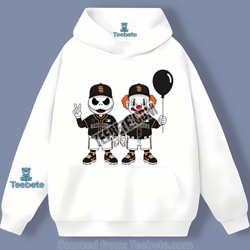 Remember that spine-tingling feeling when you first watched “The Nightmare Before Christmas” and “IT”? Now imagine that thrilling combination infused with your unwavering loyalty to the Friars. This San Diego Padres Jack Pennywise shirt perfectly captures that unique blend, creating a conversation starter that’s as fun as it is terrifying. It’s a tribute to the playful darkness of Halloween and your dedication to America’s favorite pastime, making it the perfect choice for those who dare to embrace their spooky side with team spirit.