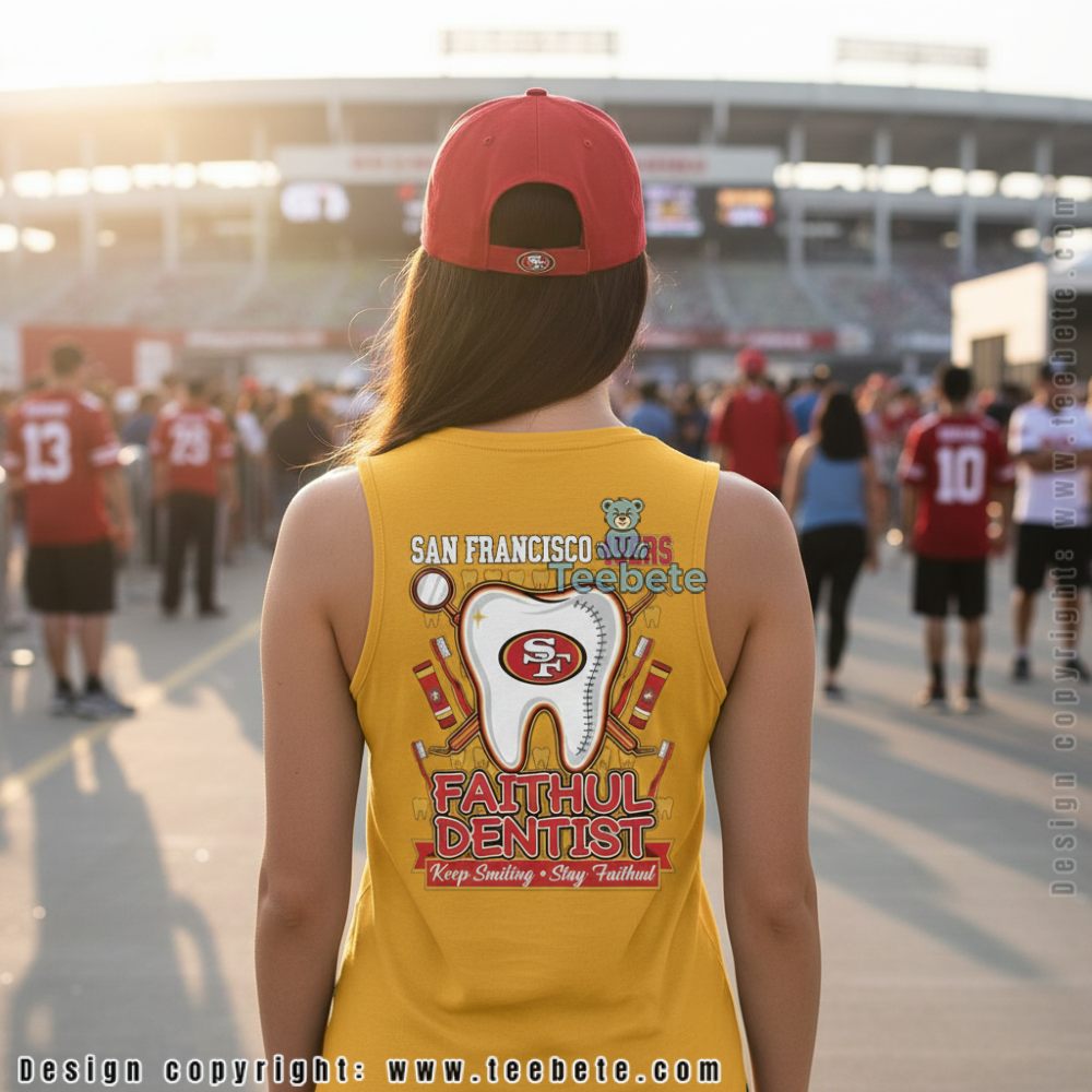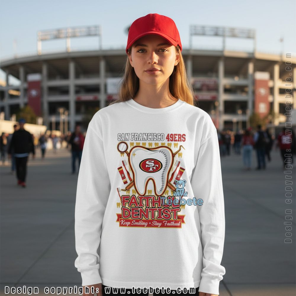 Celebrate your unwavering loyalty with the San Francisco 49ers Dentist Shirt: Keep Smiling Stay Faithful. This intriguing design embodies the spirit of true fans, reminding you to keep that faithful smile while proudly showcasing your team pride. Embrace the essence of fandom with this unique piece of apparel that resonates with every supporter.