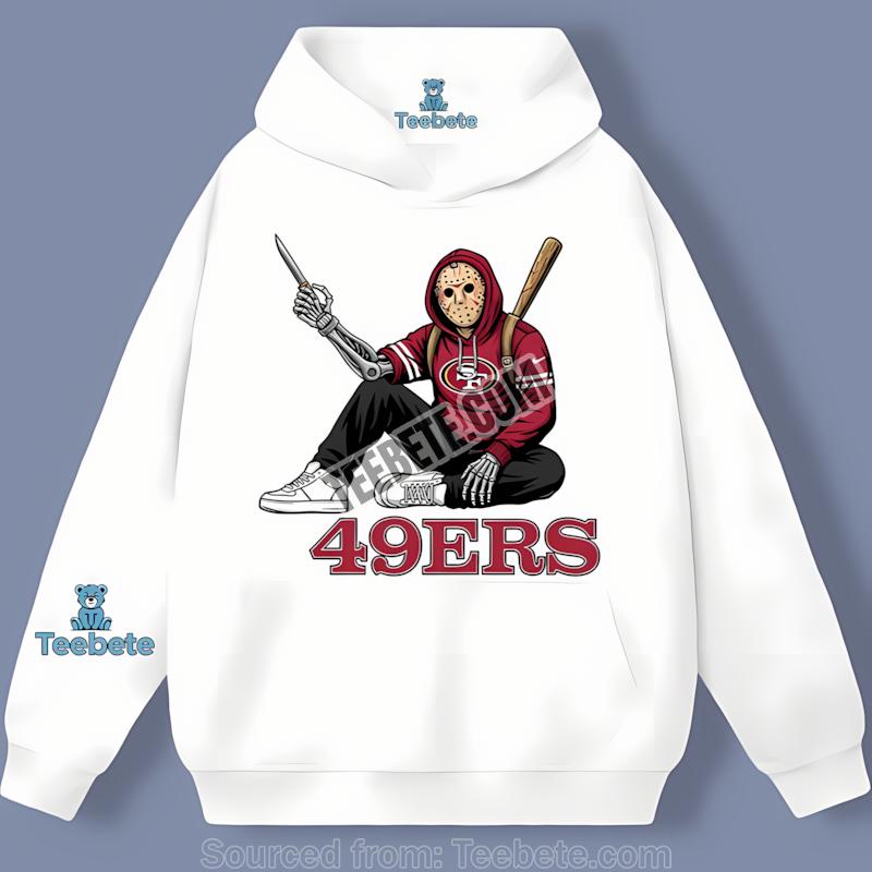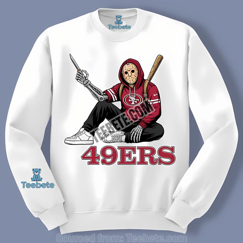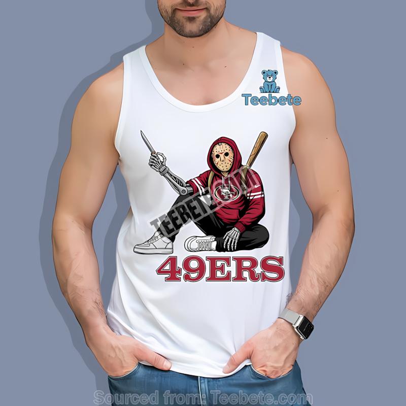 Don’t miss out on this unique opportunity to elevate your game day style! Grab your San Francisco 49Ers Jason Voorhees Street Halloween Shirt by Teebete now and show off your dual passion for horror and football like never before.