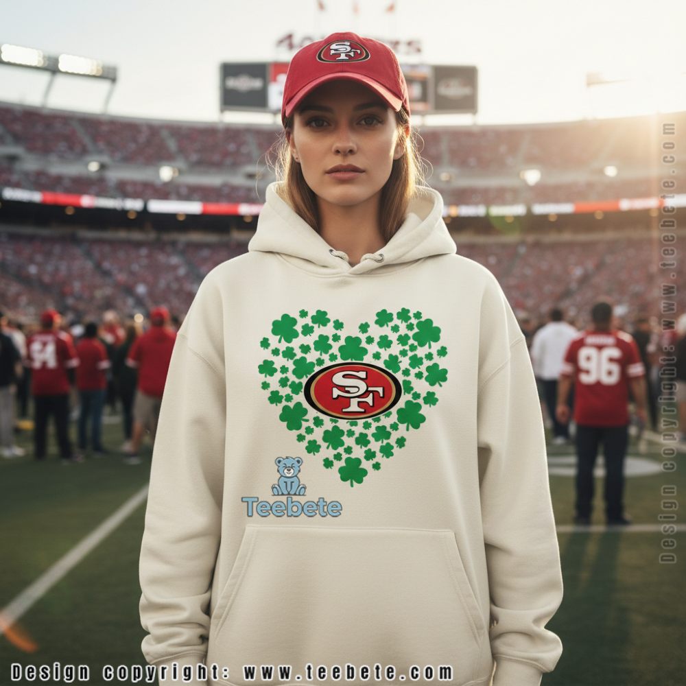 Celebrate the fusion of San Francisco pride and Irish luck with the San Francisco 49Ers Shamrock Heart Shirt For St Patricks Day, a festive fan essential available at the Teebete store. This design is perfect for “The Faithful” who want to represent the red and gold while embracing the green of the Emerald Isle during March 17th celebrations.