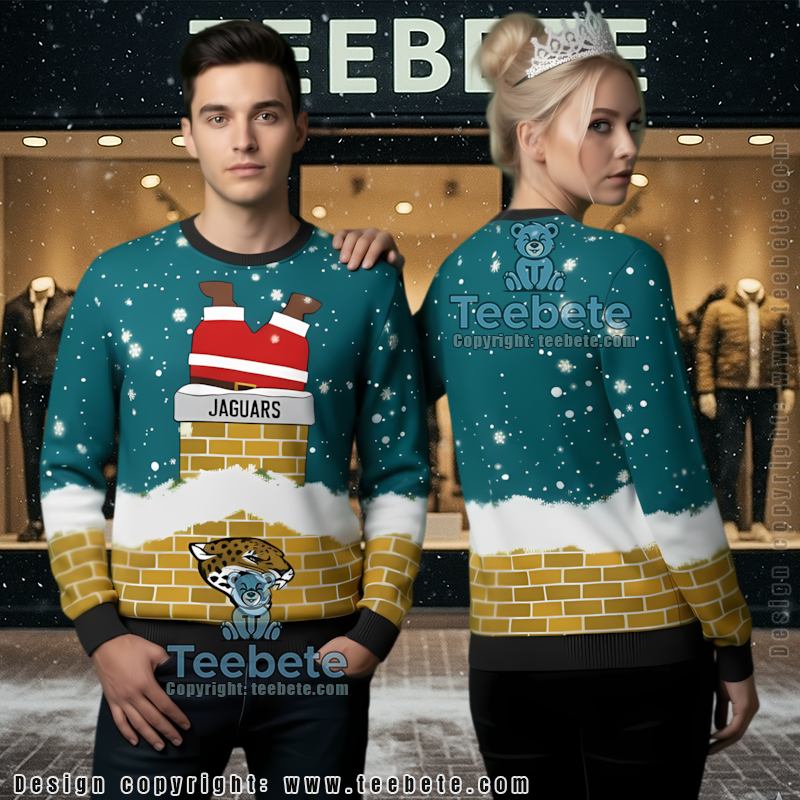 Celebrate the festive season with the unique Jacksonville Jaguars Santa Got Stuck In Chimney Ugly Christmas Sweaters Family Green. This design captures the fun spirit of the holidays while showcasing your team pride, making it a must-have apparel for any die-hard fan who wants to stand out. Embrace the cheer and joy that comes with every wear of this amazing product.