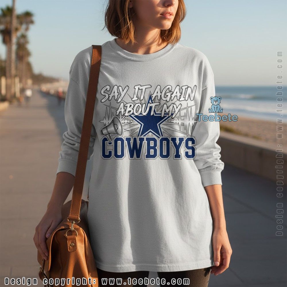 Don’t miss out on the opportunity to showcase your team spirit with this must-have Cowboys shirt. Whether for yourself or as the perfect gift for a fellow fan, the Say It Again About My Cowboys Megaphone Shirt is an essential part of your fan gear collection. Grab yours today, and let everyone know you’re ready to cheer your team to victory!