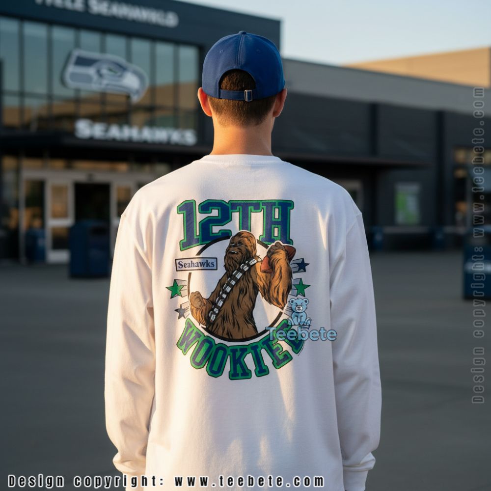 This shirt works perfectly at watch parties, comic conventions, or anywhere fans gather who share enthusiasm for both football and sci-fi culture. The “Wookiee” pun on “rookie” demonstrates the creative approach fans take when expressing their dedication through apparel. Supporters looking for designs that stand apart from standard merchandise while still honoring the 12th Man tradition will appreciate this fusion of galactic loyalty and hometown pride.