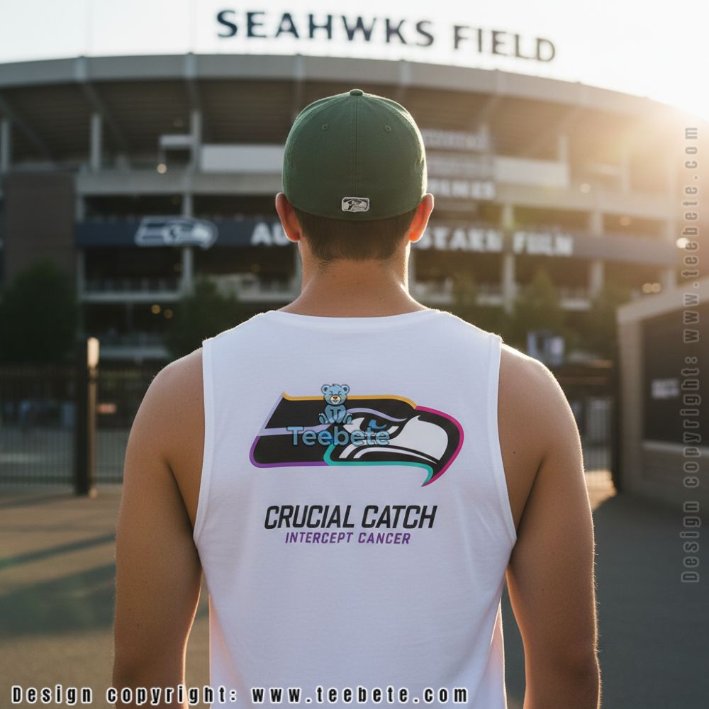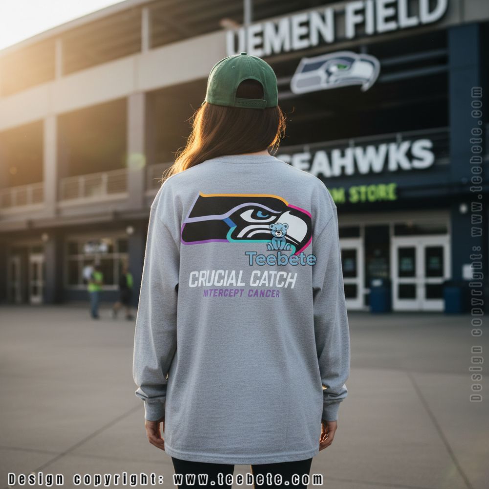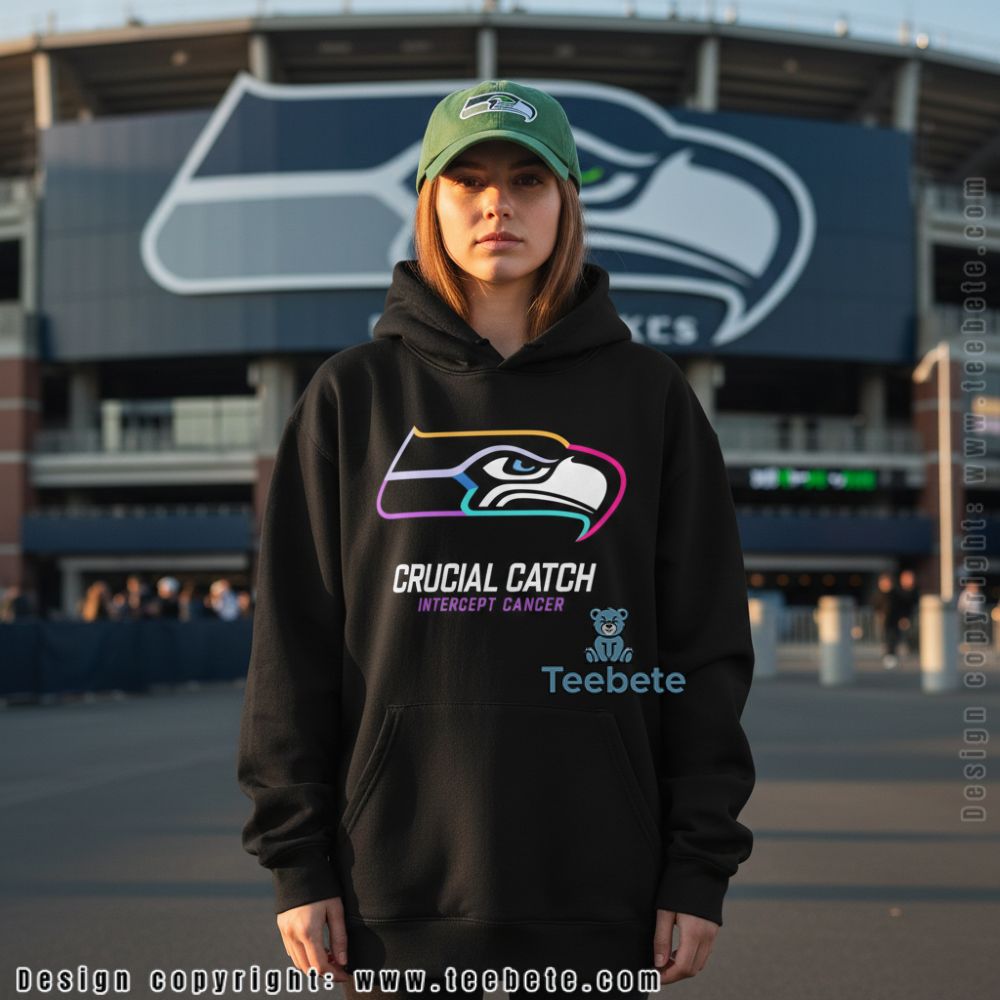 The Seattle Seahawks Crucial Catch Intercept Cancer shirt connects team pride with meaningful purpose. Featuring the iconic logo rendered in a vibrant multicolor gradient alongside the “Crucial Catch” message, this design supports cancer awareness while celebrating your 12s loyalty. It’s fan apparel that sparks conversation and shows what matters beyond the scoreboard.