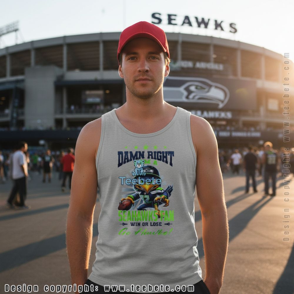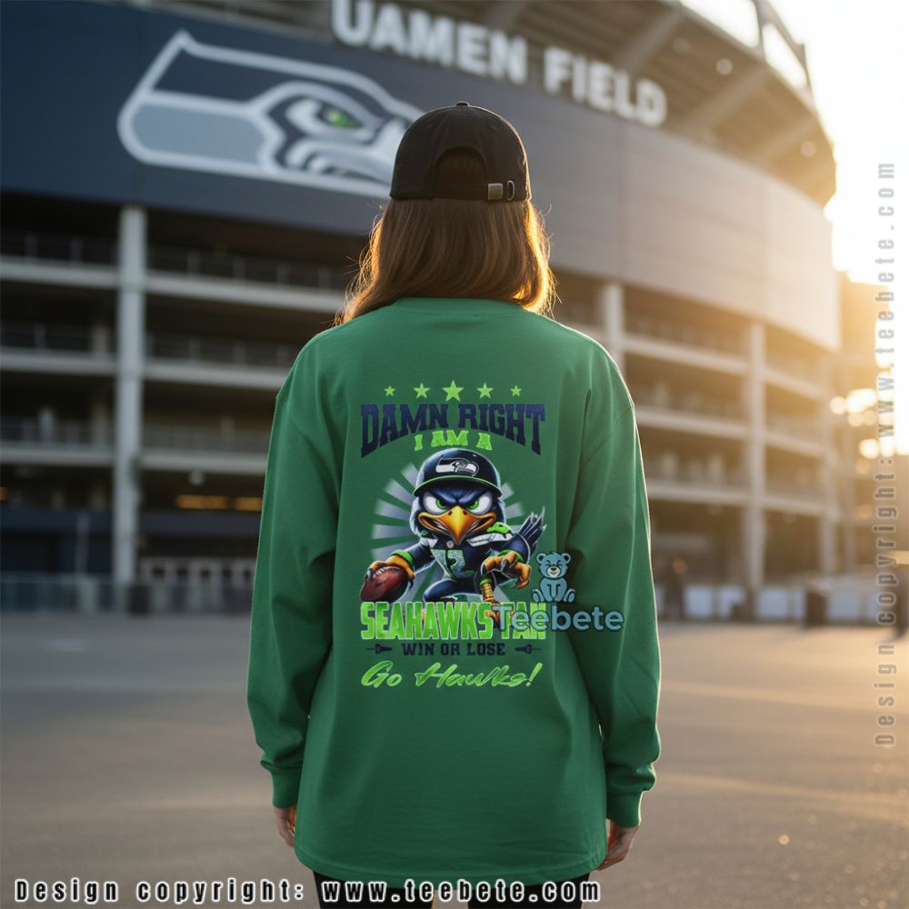 Fair-weather fans don’t need this shirt. The Seattle Seahawks Fan Win Or Lose Damn Right design speaks to supporters who stick around through playoff runs and rebuilding years equally. “Win or Lose” isn’t just filler text, it’s the mentality that separates real fans from people who only show up when the team’s winning. The aggressive Seahawk mascot graphic reinforces that this is apparel for committed fans, not casual observers.