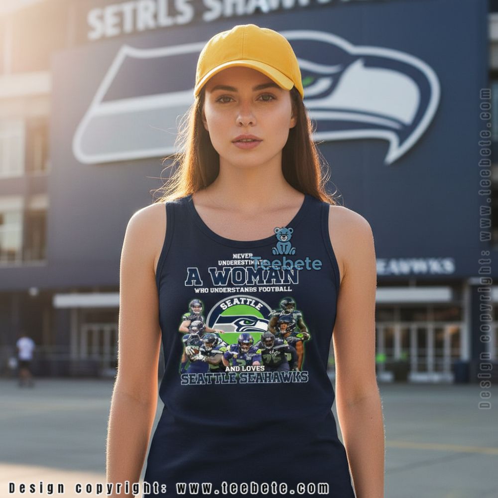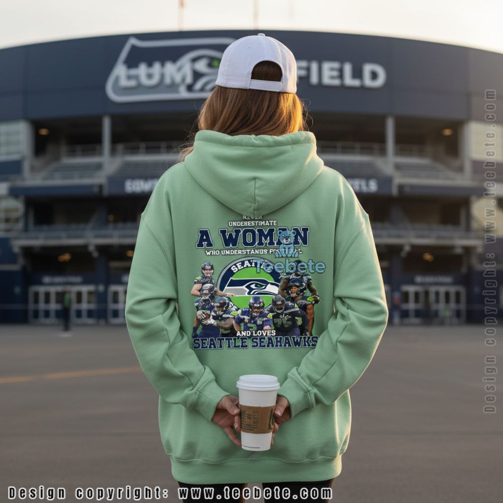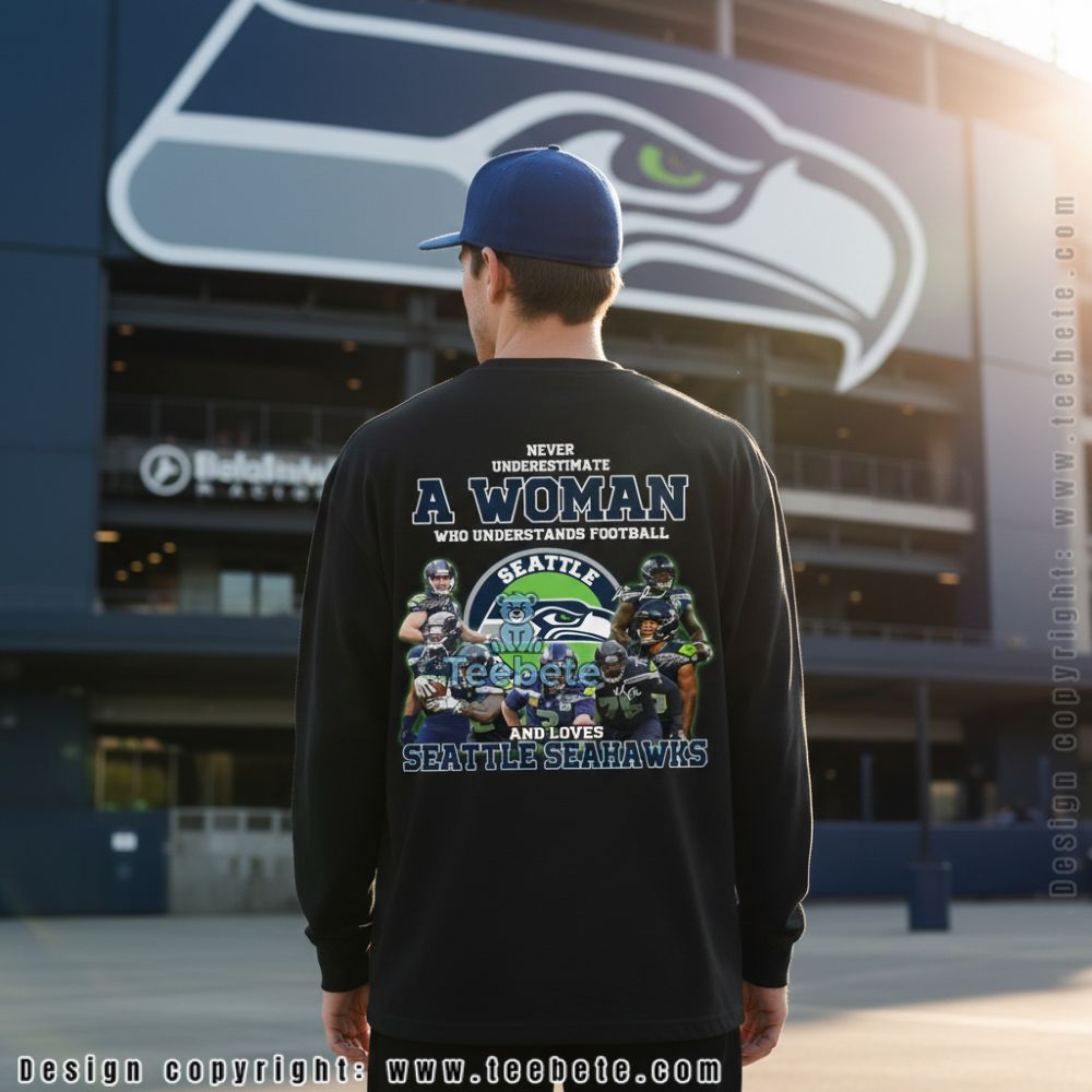 “Never Underestimate A Woman Who Understands Football And Loves Seattle Seahawks” makes the point clearly. This works as a gift for birthdays, holidays, or game day surprises for the women in your life who analyze plays, track stats, and engage with football at the same level as any fan. Cotton fabric provides comfortable all-day wear whether you’re at the stadium, a sports bar, or hosting watch parties at home.