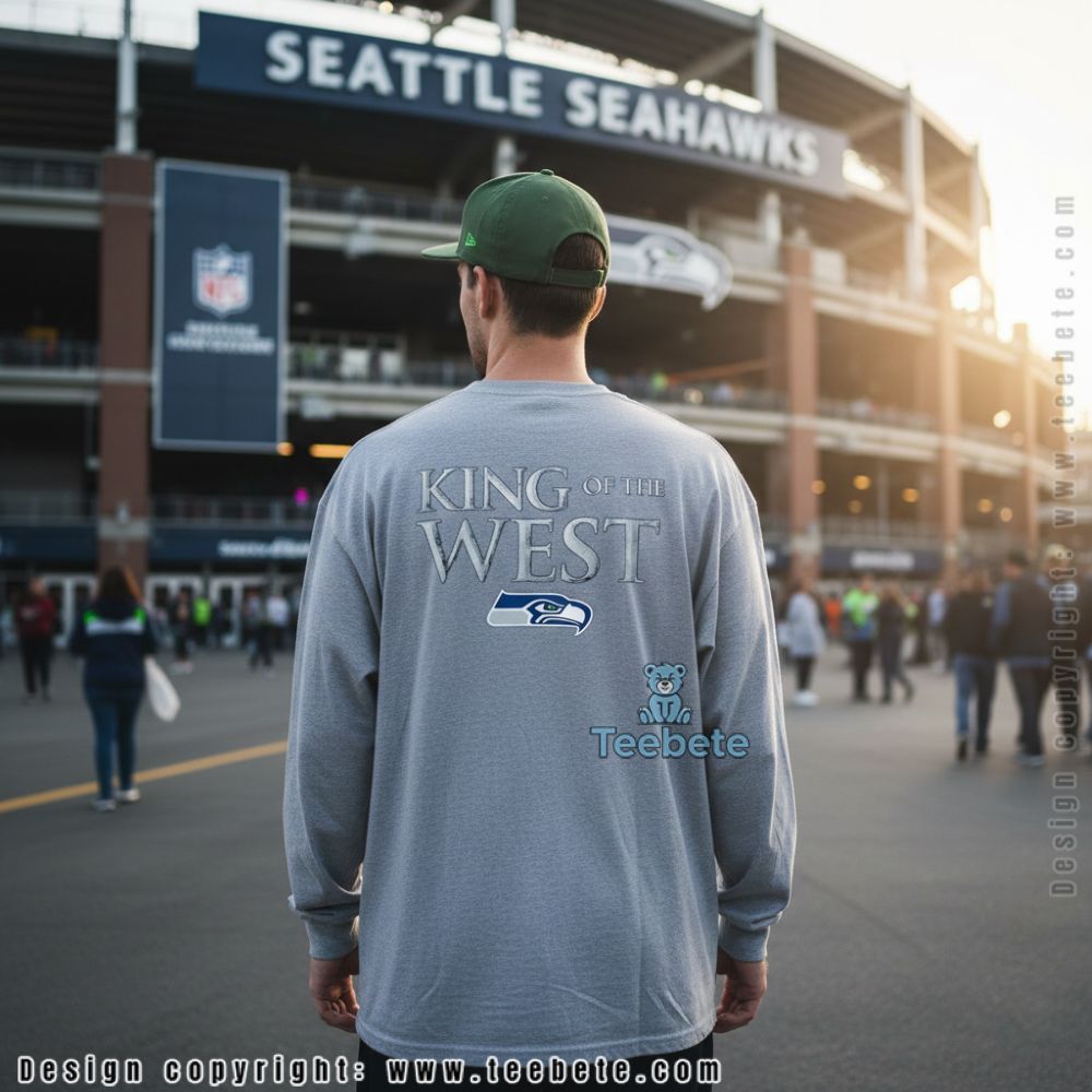 “King of the West” isn’t empty posturing when you’ve got the trophy case to back it up. The phrase carries weight for fans who’ve watched Seattle control the division repeatedly, making this more than generic trash talk apparel. Soft cotton fabric with a broken-in feel from the first wear eliminates the stiff new-shirt phase. Machine washable construction handles regular rotation without the graphics flaking or fading prematurely.