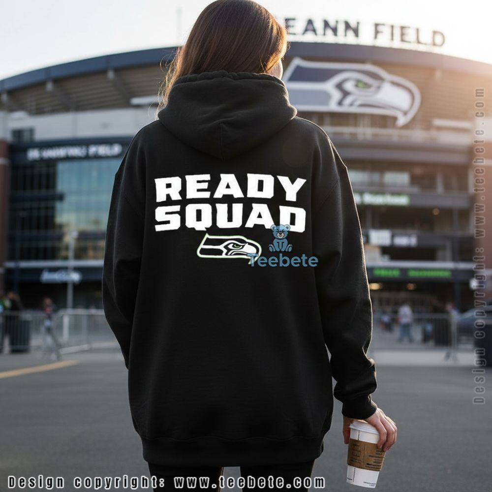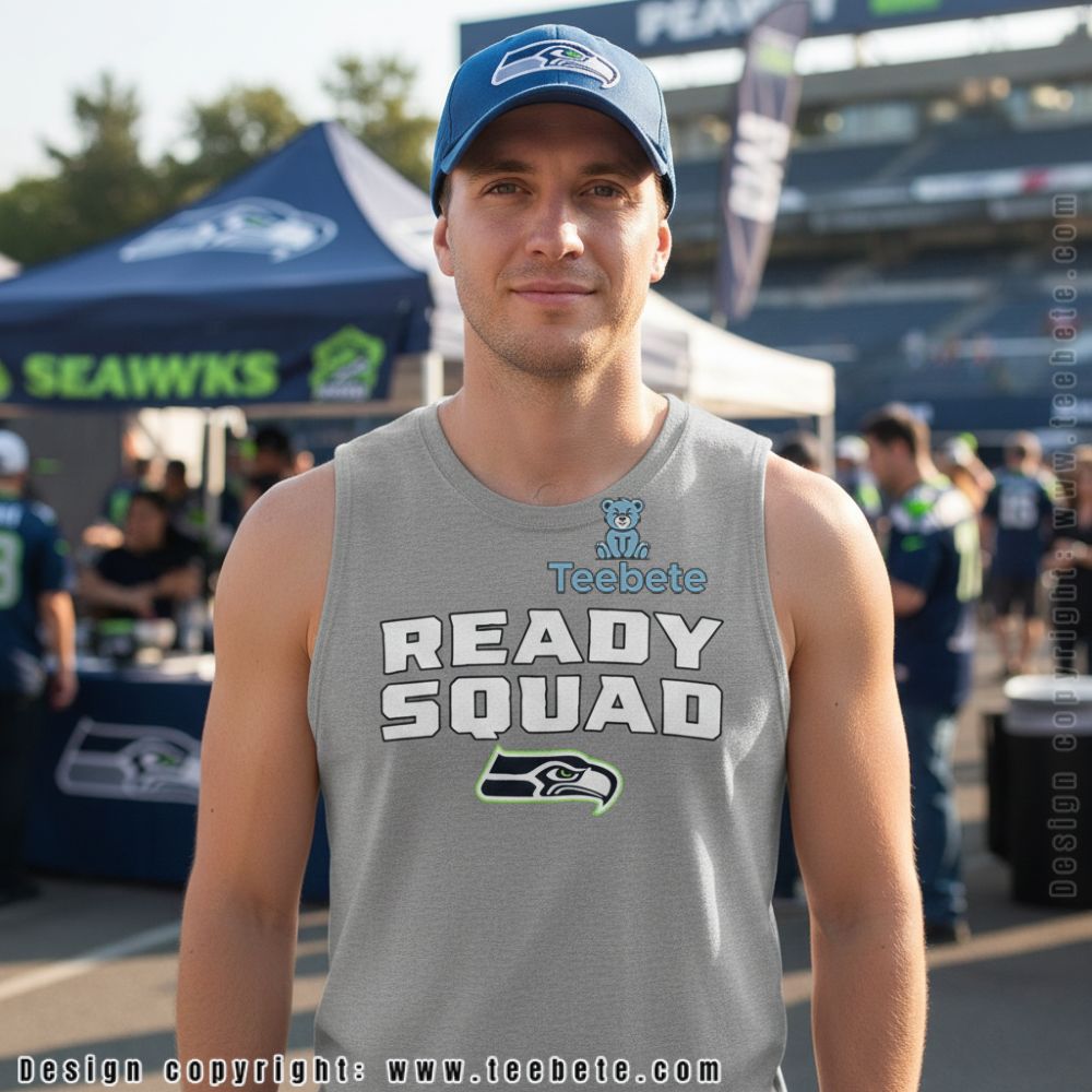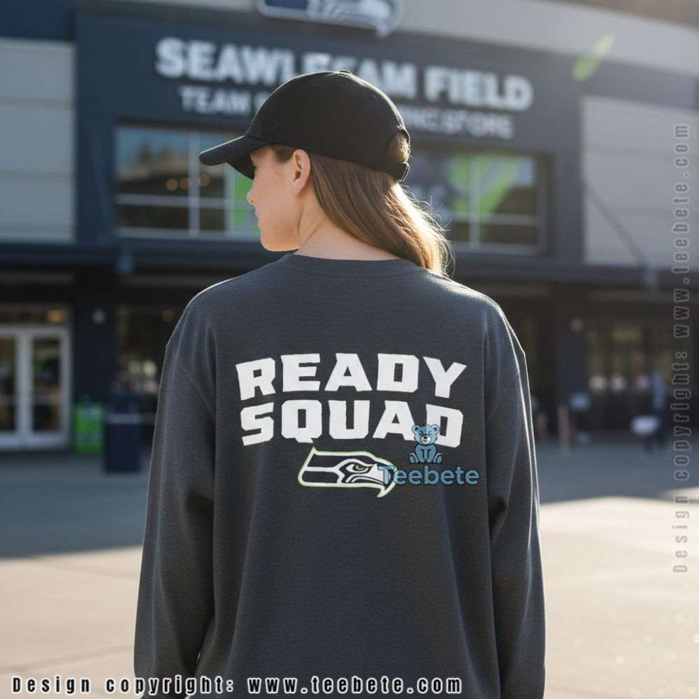 This Seattle Seahawks Ready Squad tee delivers straightforward game day messaging with bold “READY SQUAD” lettering and the team logo below. Fans looking for clean, confident apparel that declares their preparedness for whatever the season brings will appreciate this no-nonsense design approach. The typography-focused layout emphasizes readiness while the logo placement ensures clear team identification.