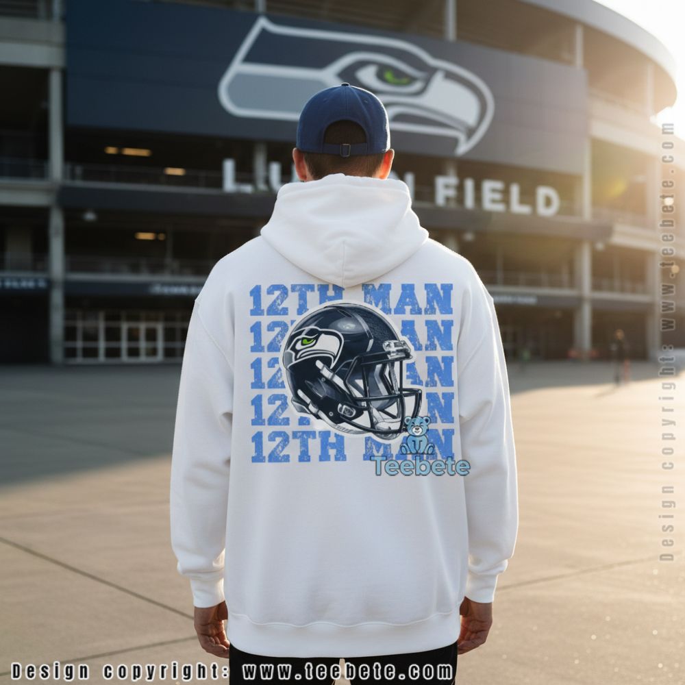 Unisex sizing from S to 5XL accommodates all body types, and the front print placement keeps your 12th Man pride front and center during every interaction. The light green base offers a fresh take on traditional team colors while maintaining clear visual connection to Seattle’s signature shade. Perfect for fans who understand that supporting the team goes beyond just showing up—it’s about bringing the energy that makes home games unforgettable.