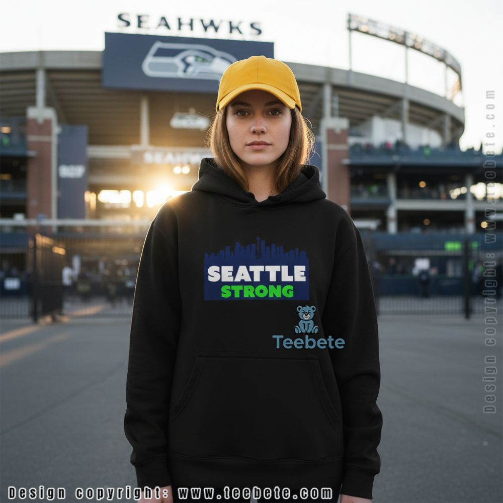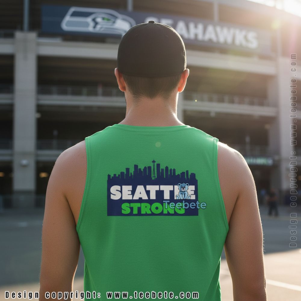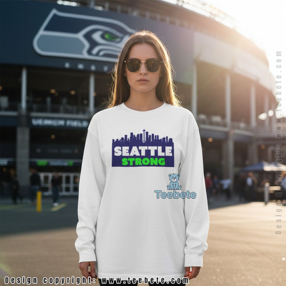 A tee designed for supporters who connect city identity with team pride, featuring the Seattle skyline silhouette above bold “SEATTLE STRONG” text in navy and vibrant green. This Seattle Strong Skyline shirt captures the resilient spirit of both the city and its passionate football community through clean graphic design that works across multiple contexts. Fans seeking apparel that bridges urban pride and game day energy will appreciate this dual-purpose approach.
