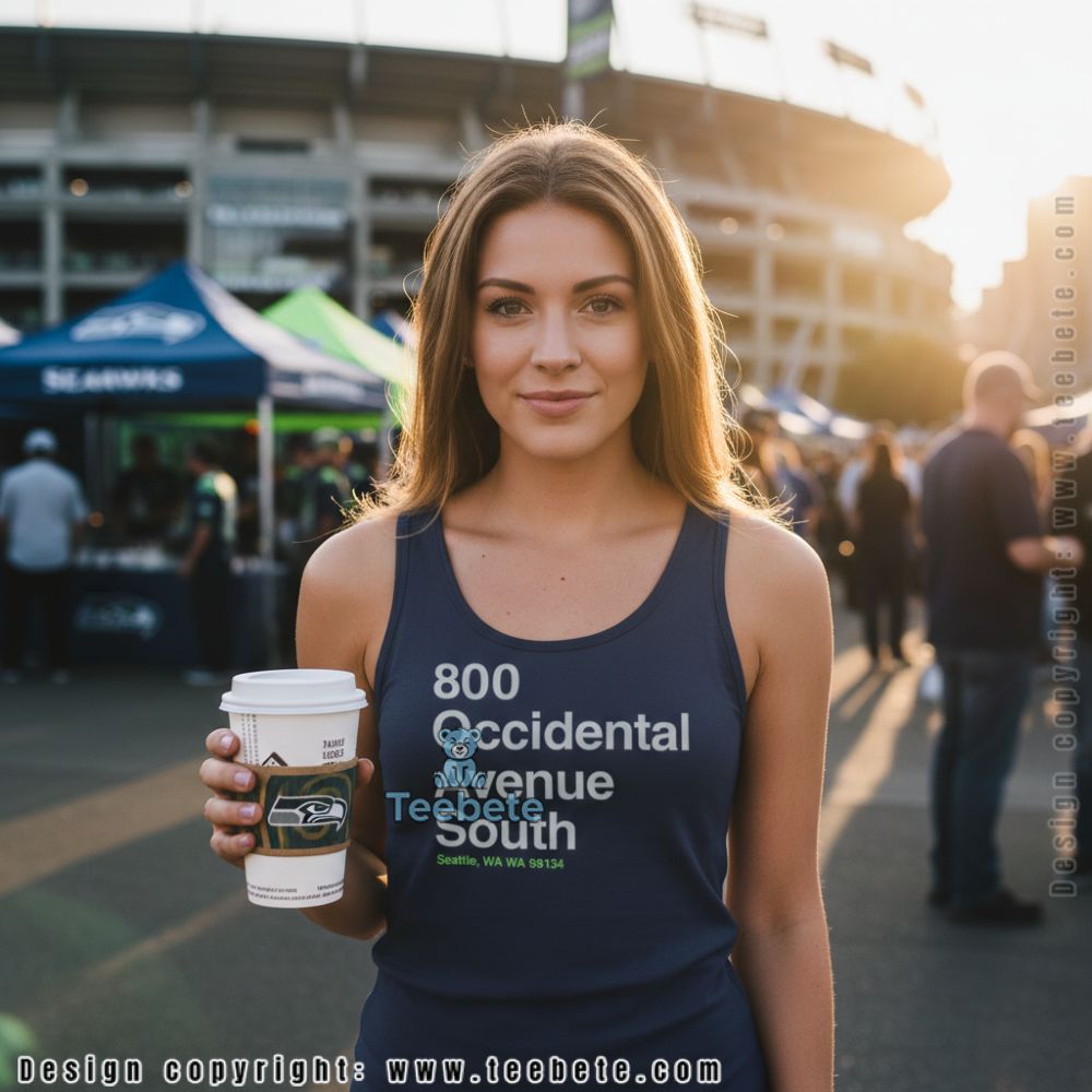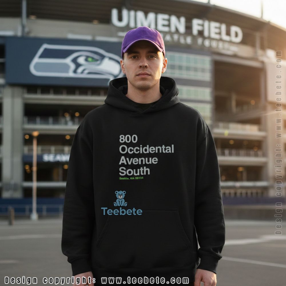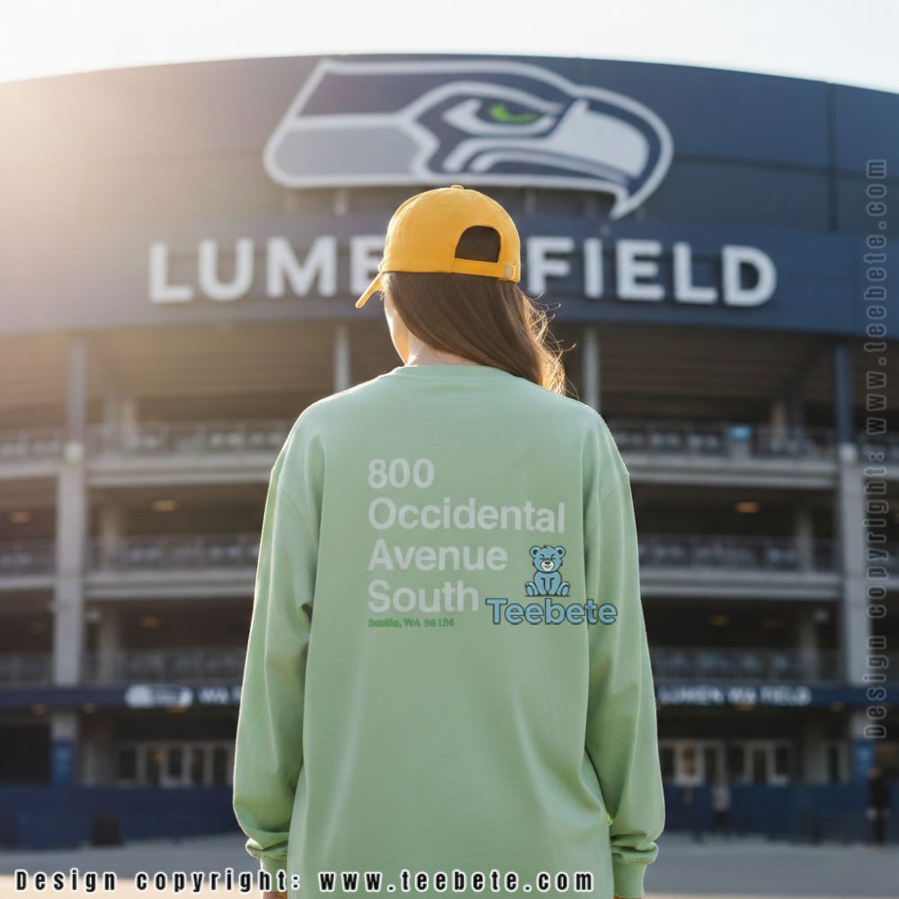 A tee designed for fans who know the exact address where game day magic happens, featuring “800 Occidental Avenue South” in bold white lettering with “Seattle, WA 98134” below in vibrant green. This Seattle Washington 800 Occidental Avenue South shirt speaks directly to supporters who’ve made the pilgrimage to the stadium and want to wear their connection to that iconic location. The back print design ensures your tribute is visible in crowds, perfect for tailgates or watch parties.