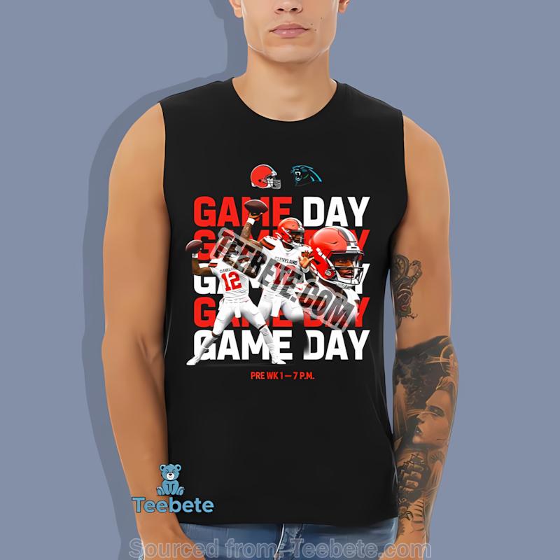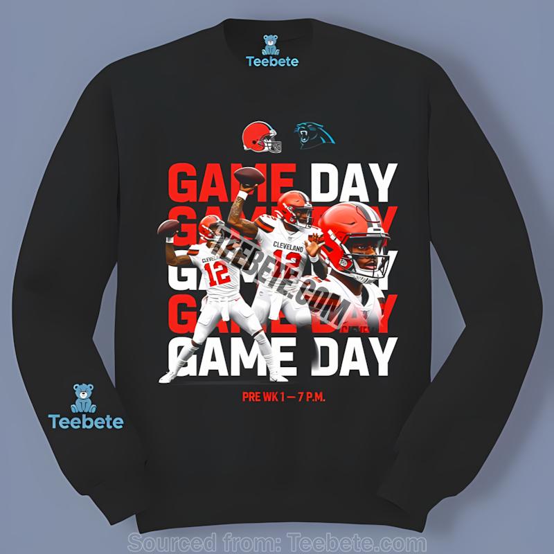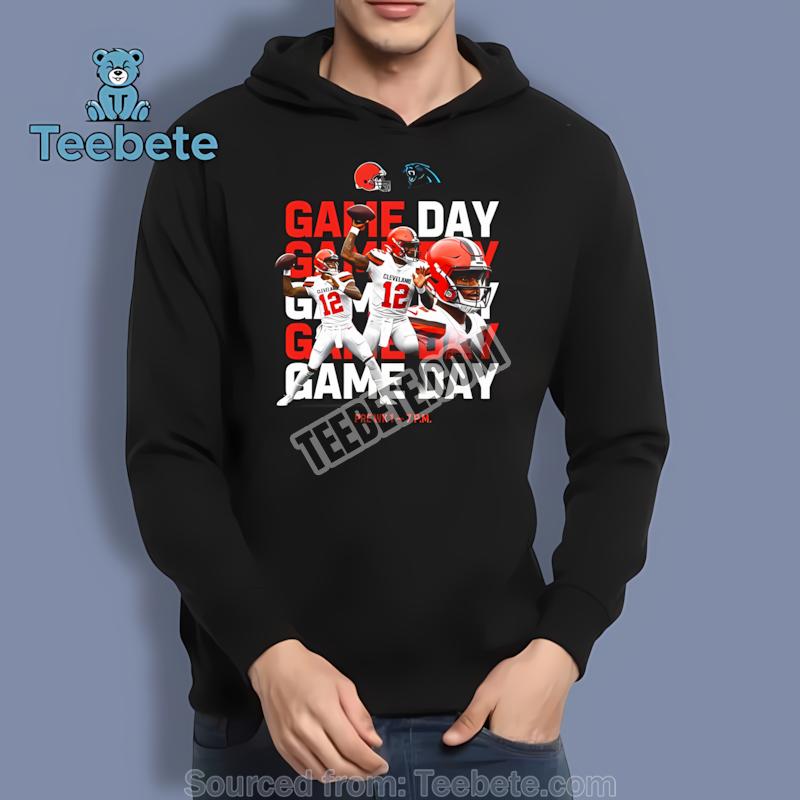 Now is the perfect time to elevate your wardrobe with this must-have tee. Get your Shedeur Sanders Cleveland Browns Vs Panthers Game Day Poster Shirt from Teebete today and proudly represent your team!