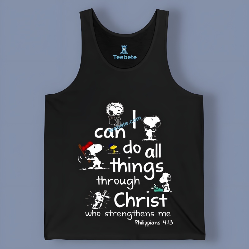 Showcasing a unique Snoopy I Can Do All Things Through Christ Shirt Design, the creative artwork captures the essence of the famous beagle with a faithful touch. The high-resolution print brings the design to life with vibrant colors and sharp details, ensuring the image remains crisp and clear, wash after wash. The artistry on this shirt is sure to inspire and uplift.