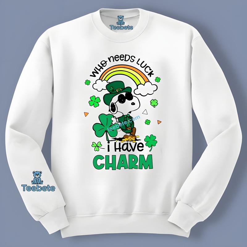 Show off your charm this St. Patrick’s Day with the Snoopy Patrick Day Who Needs Luck I Have Charm Shirt Men. Featuring Snoopy and the witty phrase Who Needs Luck I Have Charm, this shirt is the perfect way to celebrate with humor and style. Made from soft, breathable cotton, this shirt is comfortable for all-day wear. Whether you’re attending a St. Patrick’s Day parade, enjoying a pint with friends, or just relaxing at home, this shirt will keep you feeling lucky and stylish. Pair it with a green jacket or casual jeans for a complete festive look.