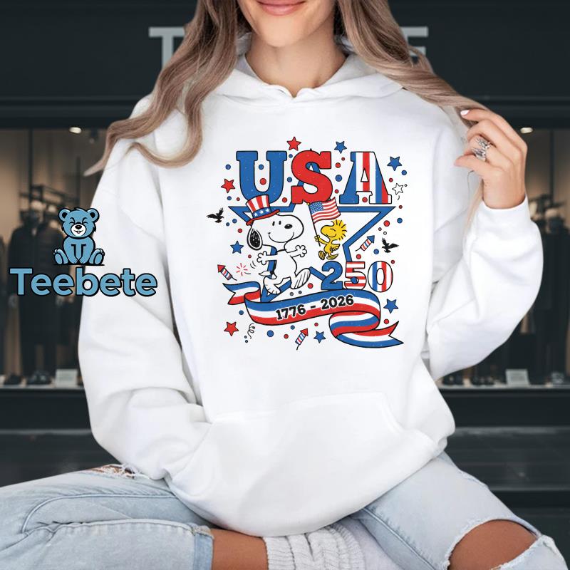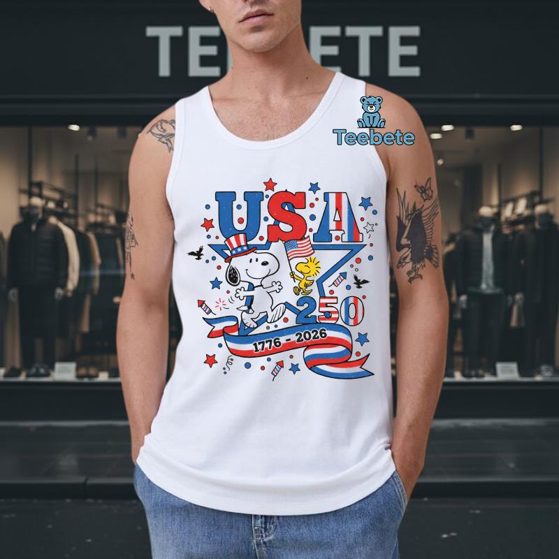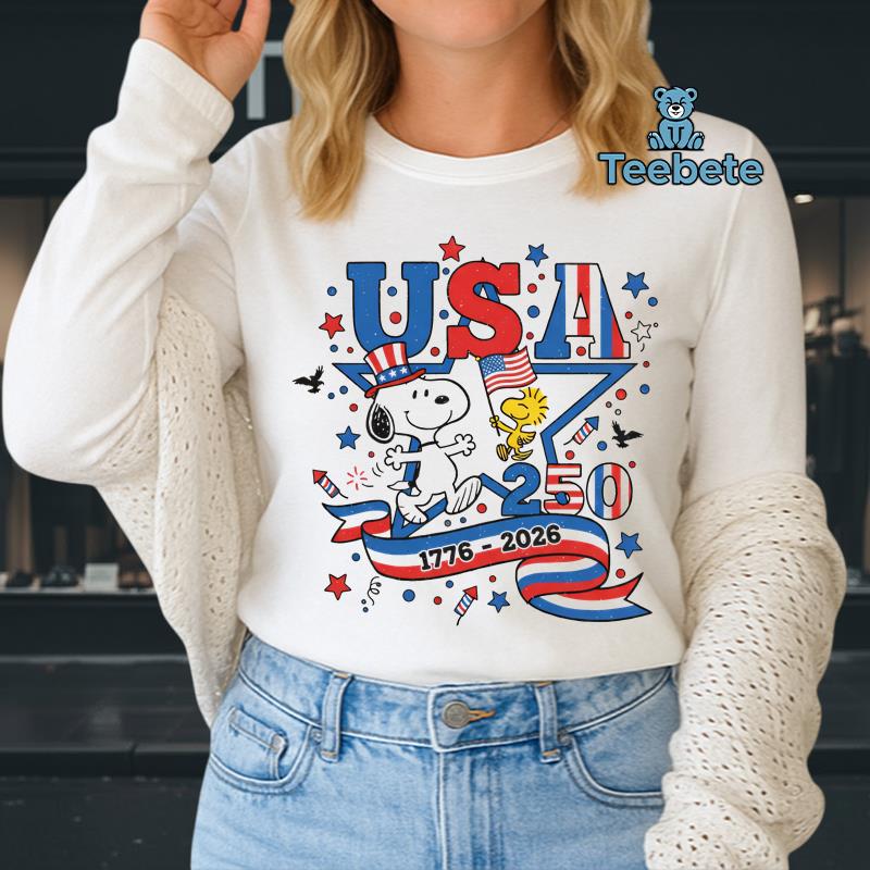 Stars and stripes mesh seamlessly in the design of this T-Shirt, while a playful Snoopy character exudes charm and festivity. The graphic arrangement centers on the iconic beagle, surrounded by symbols of Independence Day like fireworks and American flags that dance across the backdrop. Set against a bright color palette of red, white, and blue, the Independence Day Snoopy T-Shirt uses full-coverage printing to create a vibrant, eye-catching visual that stands out, perfect for celebrating freedom and patriotism.