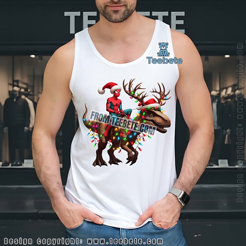 Unleash your holiday spirit with the vibrant Spider Man Riding T Rex Christmas Lights Shirt, perfect for celebrating the festive season in style. This captivating design blends iconic superheroes and whimsical dinosaurs to create a unique twist on traditional holiday apparel. You’ll love how this Spider Man-themed shirt brings joy and cheer, making it a standout choice for any Christmas gathering.