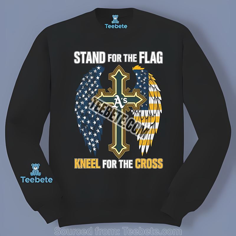 Unleash your inner A’s fan with this powerful statement piece: the Stand For The Flag Kneel For The Cross Oakland Athletics Shirt from Teebete. This isn’t just another team tee; it’s a declaration of faith and patriotism, designed for those who proudly wear their beliefs on their sleeves. The design itself came about from conversations with our customers—true Oakland Athletics fans who wanted to express their faith without compromising their love for the green and gold.