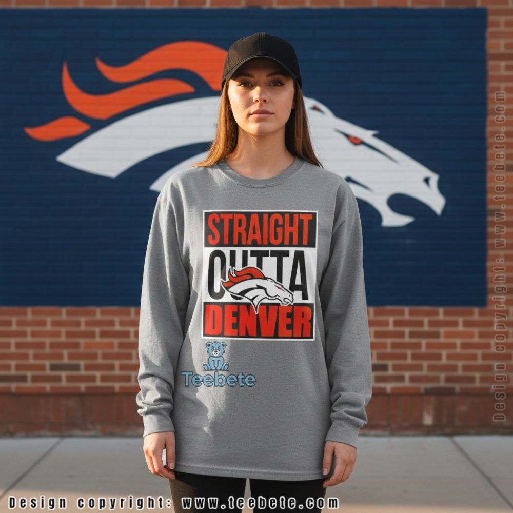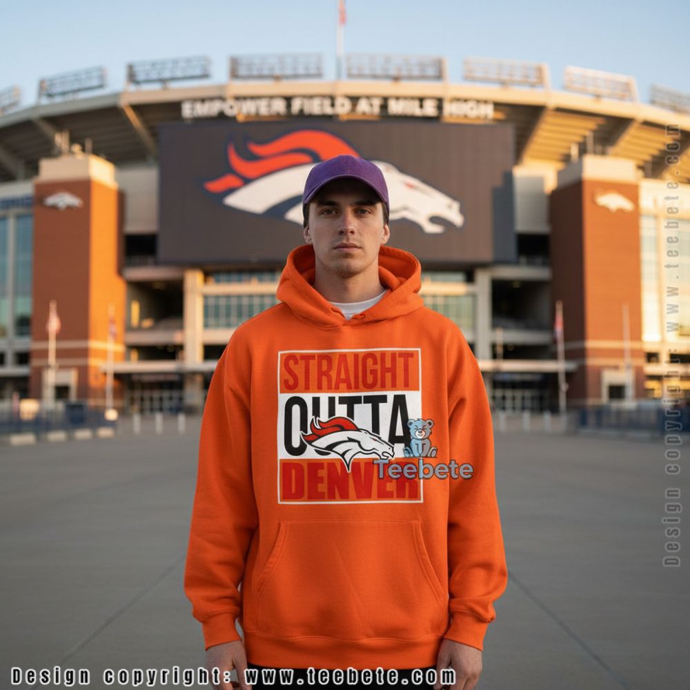 Straight Outta Denver Broncos – because being from the Mile High City isn’t just geography, it’s an identity. This bold statement piece merges hip-hop culture with football fandom, creating something that’s equal parts streetwear and sports pride. The striking design commands attention from the back, making it clear where your roots lie and which team owns your heart.