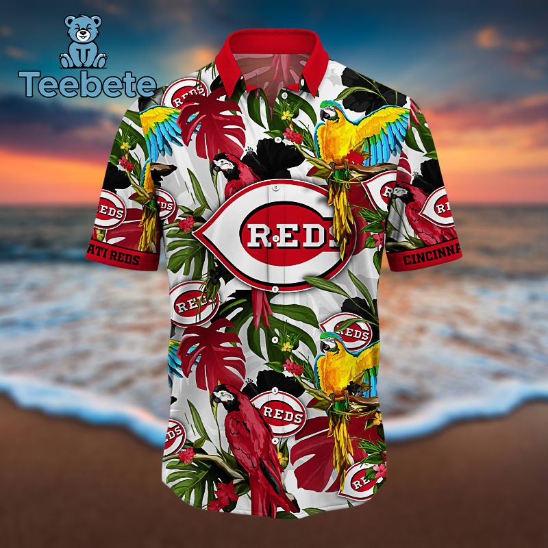 Escape the ordinary with this Summer Parrot Cincinnati Reds Logo Tropical Print Shirt Womens by Teebete. Designed to capture the vibrant energy of summer and the legendary spirit of the Cincinnati Reds, this shirt is more than just apparel; it’s a statement.