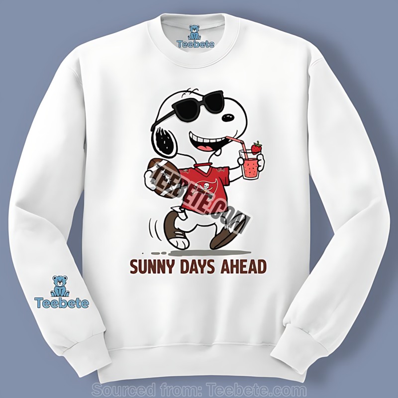 Experience the ultimate blend of comfort, style, and team spirit. Order your Sunny Days Ahead Tampa Bay Buccaneers Snoopy Drink Strawberry Juice Shirt from Teebete today and let the good times roll!