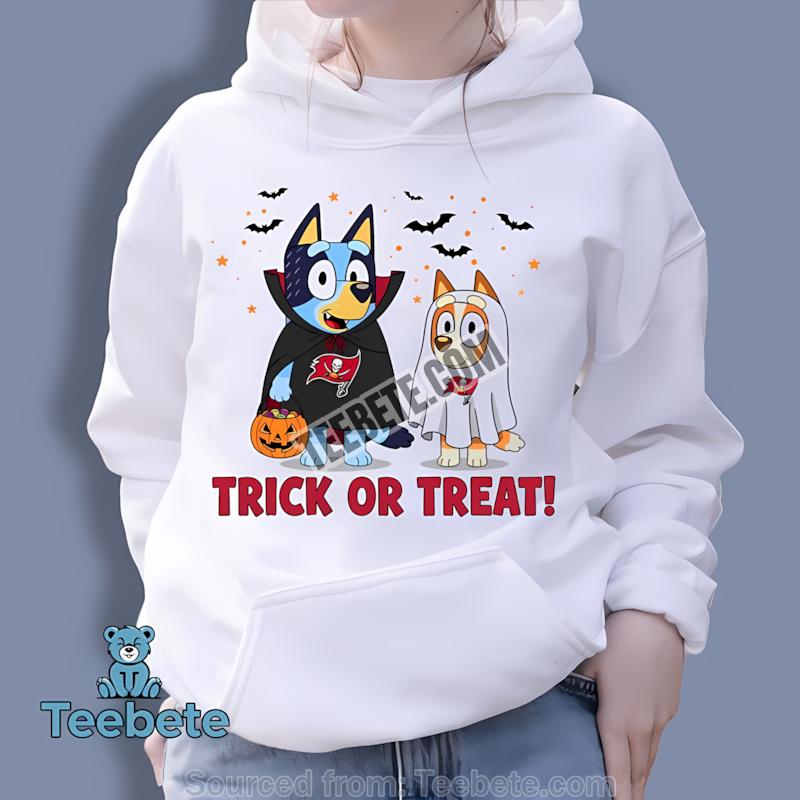 The Tampa Bay Buccaneers Bluey Bingo Trick Or Treat Halloween Shirt is not only stylish but also comfortable. Crafted from premium, breathable fabric, this shirt allows for ease of movement whether you’re out trick-or-treating with the family or cheering on the Buccaneers at a game. The vivid graphics featuring Bluey and Bingo celebrate the festive season while showcasing your loyalty to the Bucs, making it a standout piece in any fan’s wardrobe.
