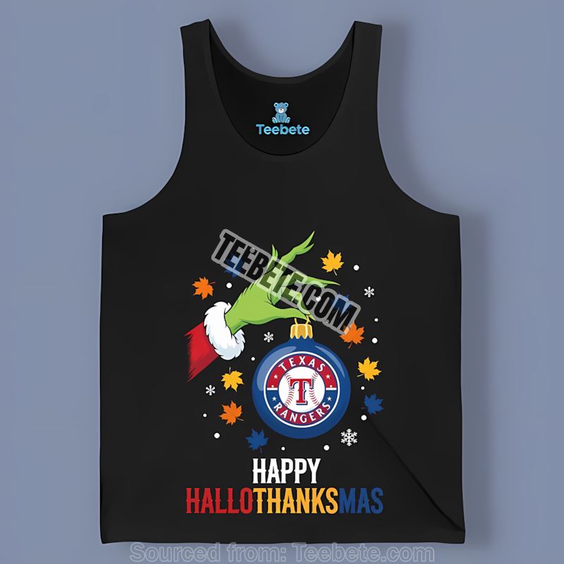 Step into the spirit of the season with our Texas Rangers Happy Hallothanksmas Holiday Mix Cotton Shirt, a perfect blend of festive cheer for die-hard fans. Inspired by a love for the game and the joy of holiday celebrations, this shirt brings together the iconic elements of Halloween, Thanksgiving, and Christmas. It’s a reminder that whether on or off the field, community and camaraderie are what truly matter.