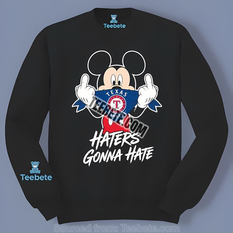 Embrace the spirit of camaraderie and playful rivalry with our Texas Rangers Mickey Mouse Haters Gonna Hate Trendy Shirt. This design serves as a heartfelt tribute to the joy of fandom, uniting fans through witty banter and an iconic character that sparks nostalgia. Whether you’re at the ballpark or watching the game from home, this shirt lets you showcase your allegiance and love for the Texas Rangers while sparking laughter and connections with fellow fans.