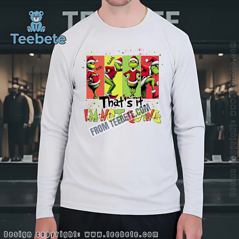 Embrace the holiday spirit and share your funny side with this shirt that celebrates both joy and refusal. Perfect as a gift or a personal treat, this item is a must-have. Grab your Thats It Im Not Going Grinch Shirt Funny Christmas Refusal today and bring a smile to your celebrations!