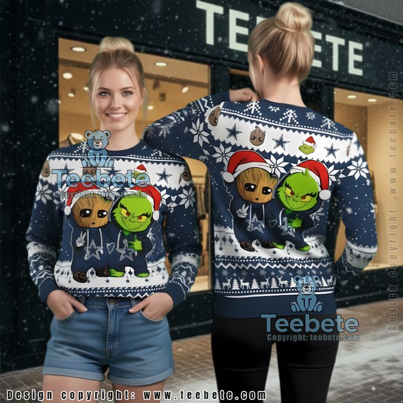 Product information "Dallas Cowboys The Grinch And Baby Groot Best Christmas Ugly Sweaters Blue"