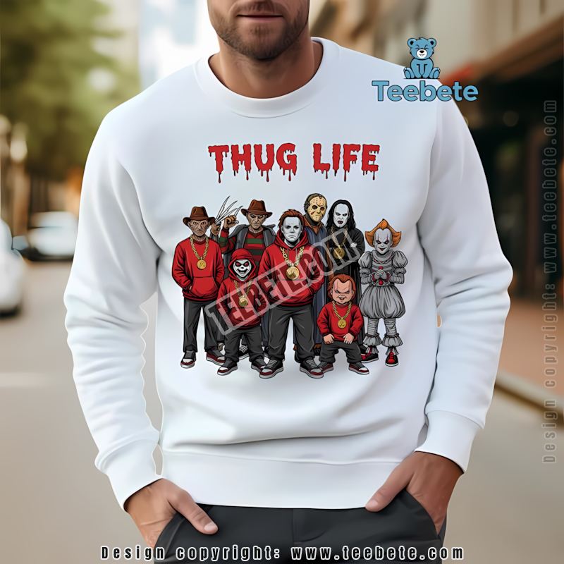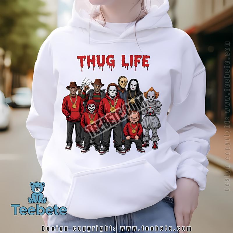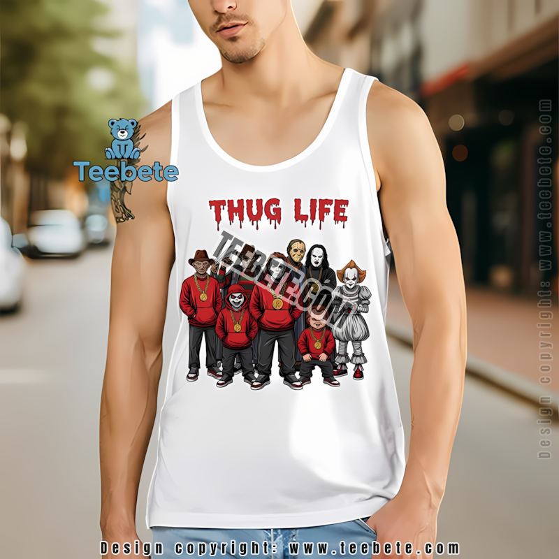 Don’t miss out on adding this unique piece to your collection. Grab your Thug Life Freddy Jason Voorhees Michael Halloween Shirt now and showcase your love for horror in style!