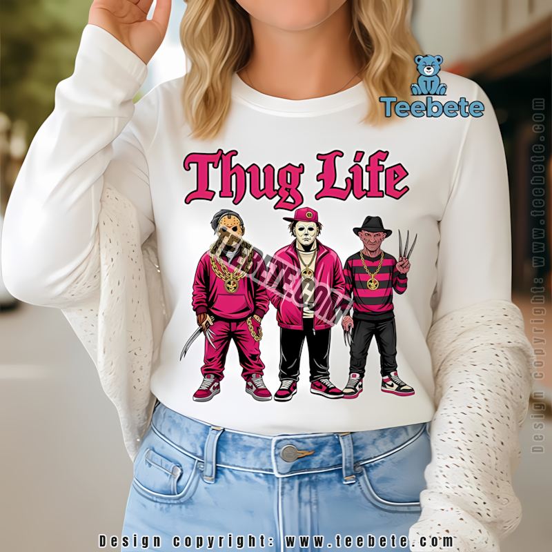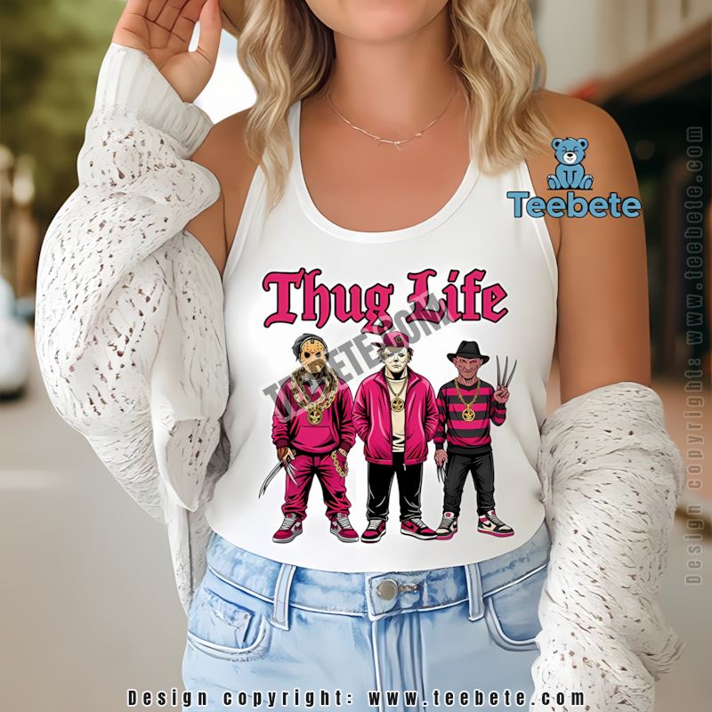 Get ready to make your statement! Purchase the Thug Life Jason Michael Freddy Pink Halloween Retro Shirt today and let your style tell your story!
