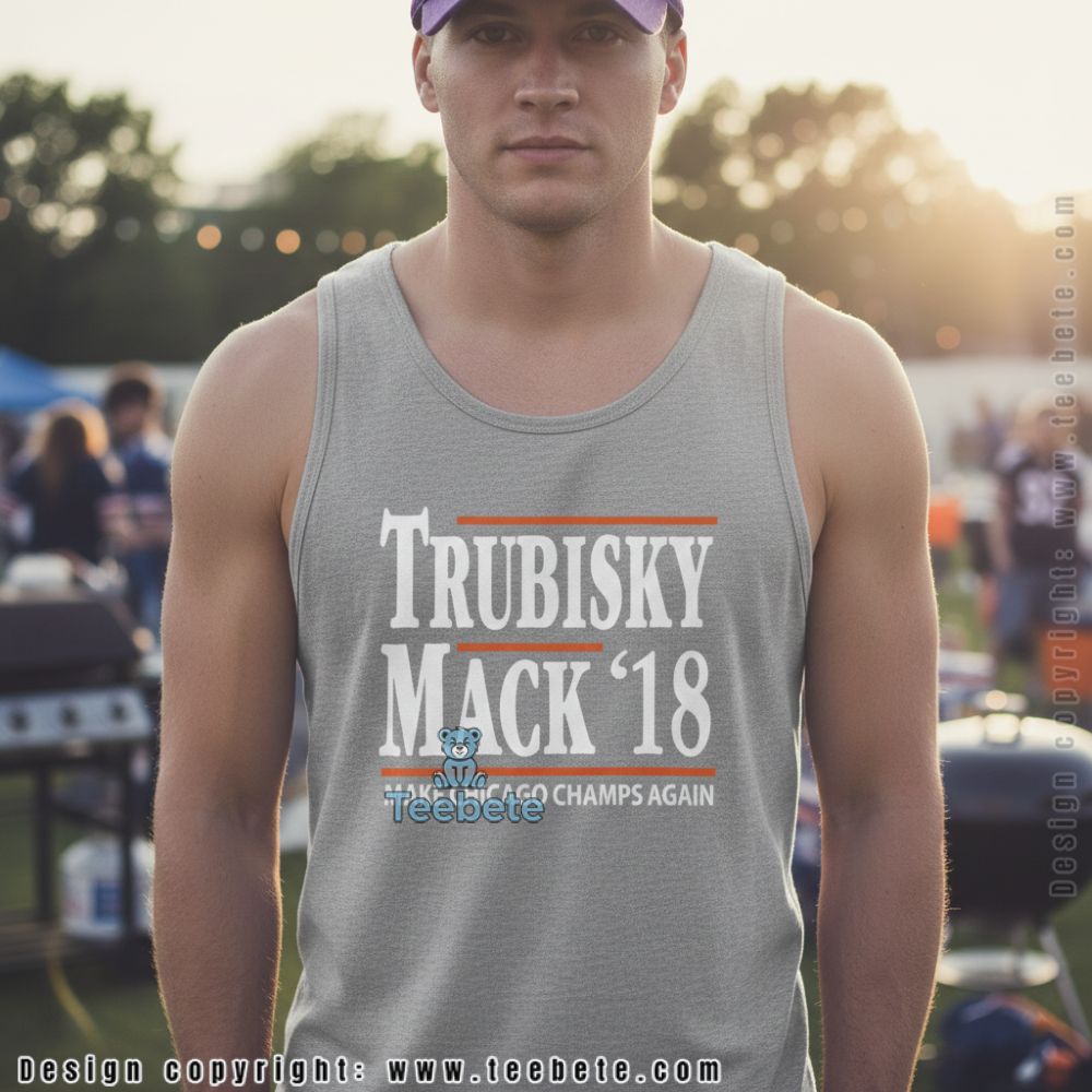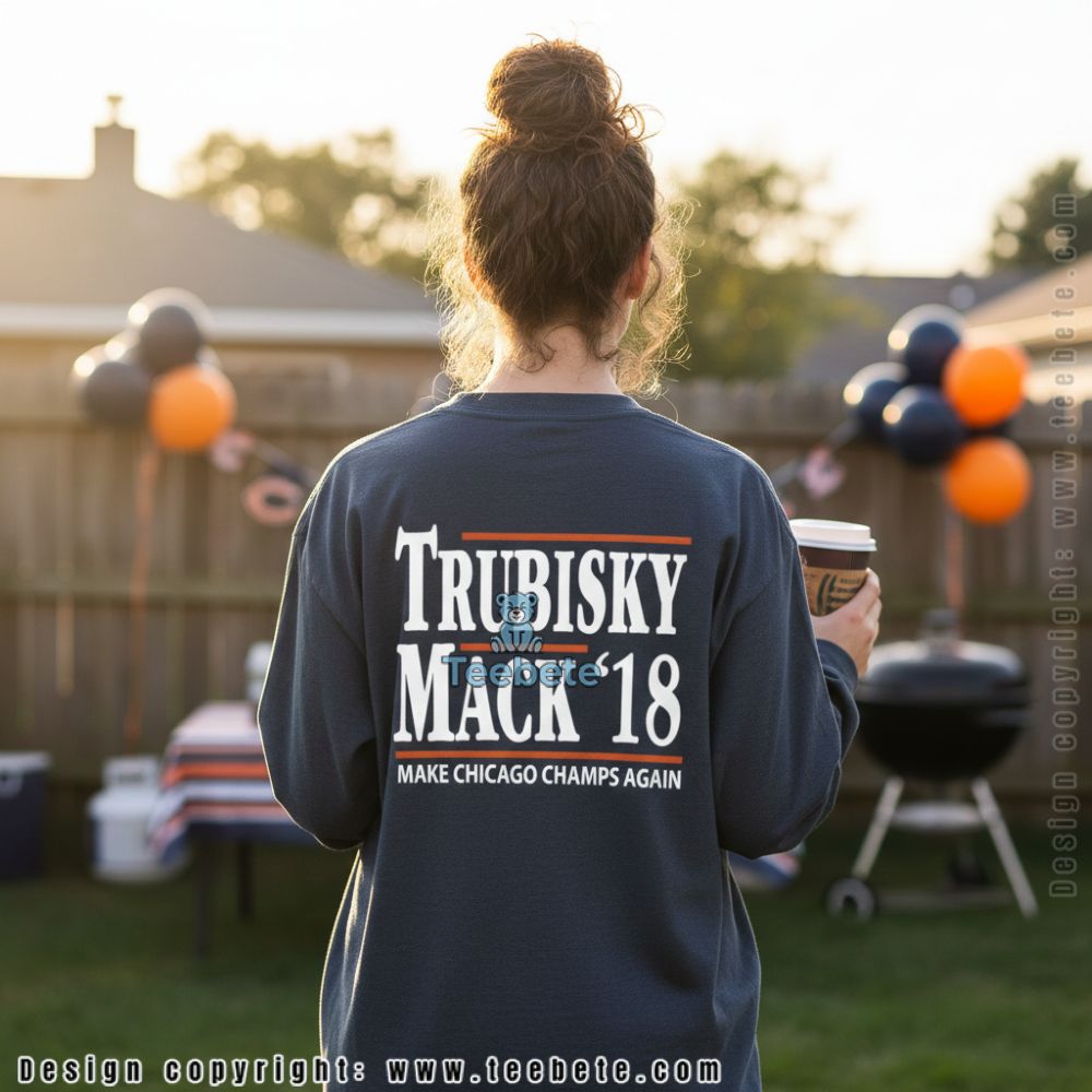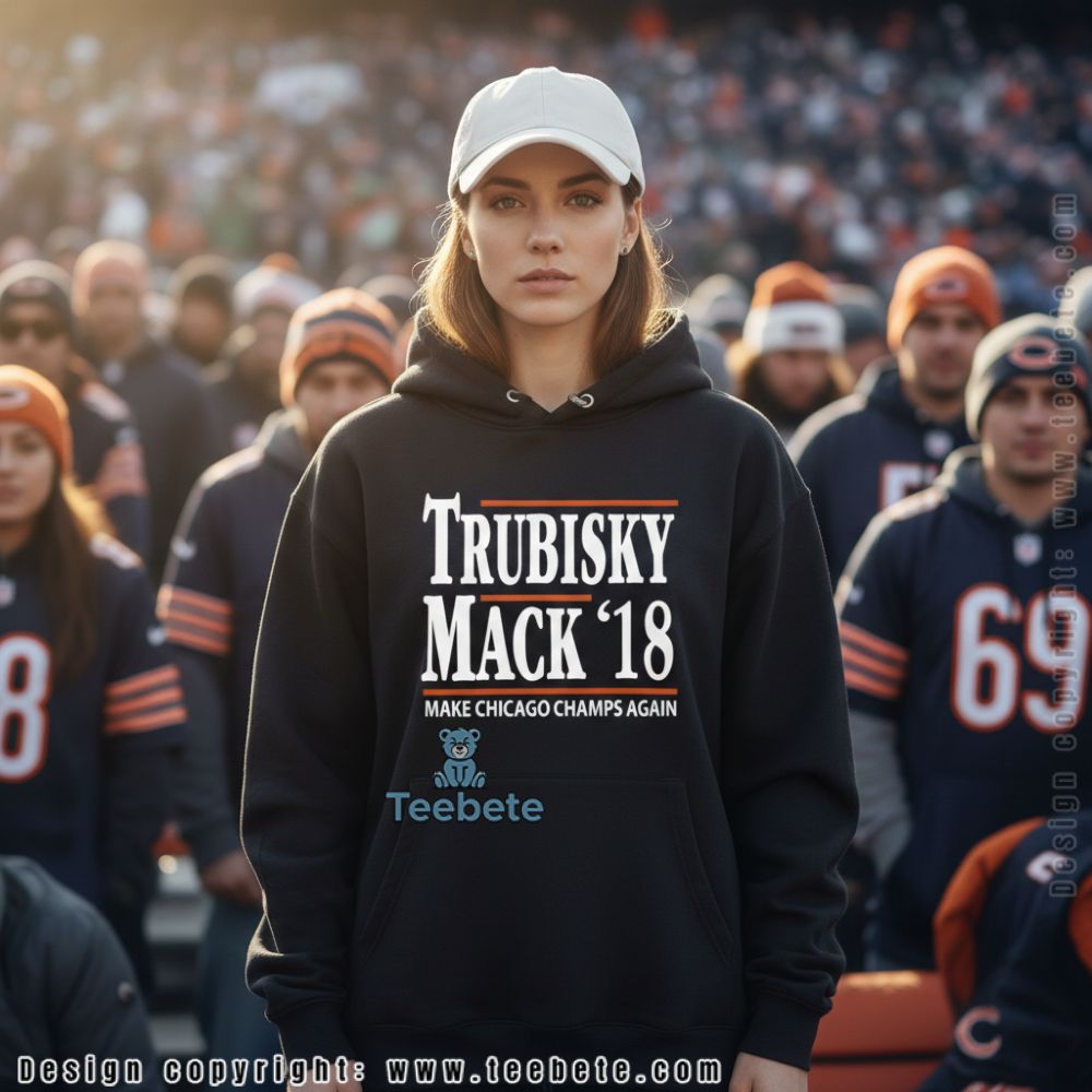 Trubisky Mack 18 Make Chicago Champs Again Football Shirt is designed as a striking T-shirt that captures the essence of Chicago sports pride. Its bold graphics boast a dynamic interplay of vivid colors, showcasing the player’s number and name in a radiant font that pops against the shirt’s backdrop. The full-coverage printing style ensures a seamless integration of imagery and text, creating an eye-catching visual appeal that stands out in any crowd.