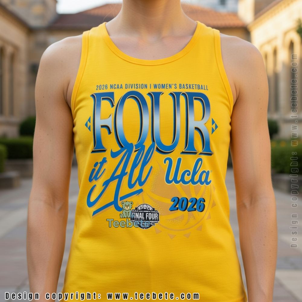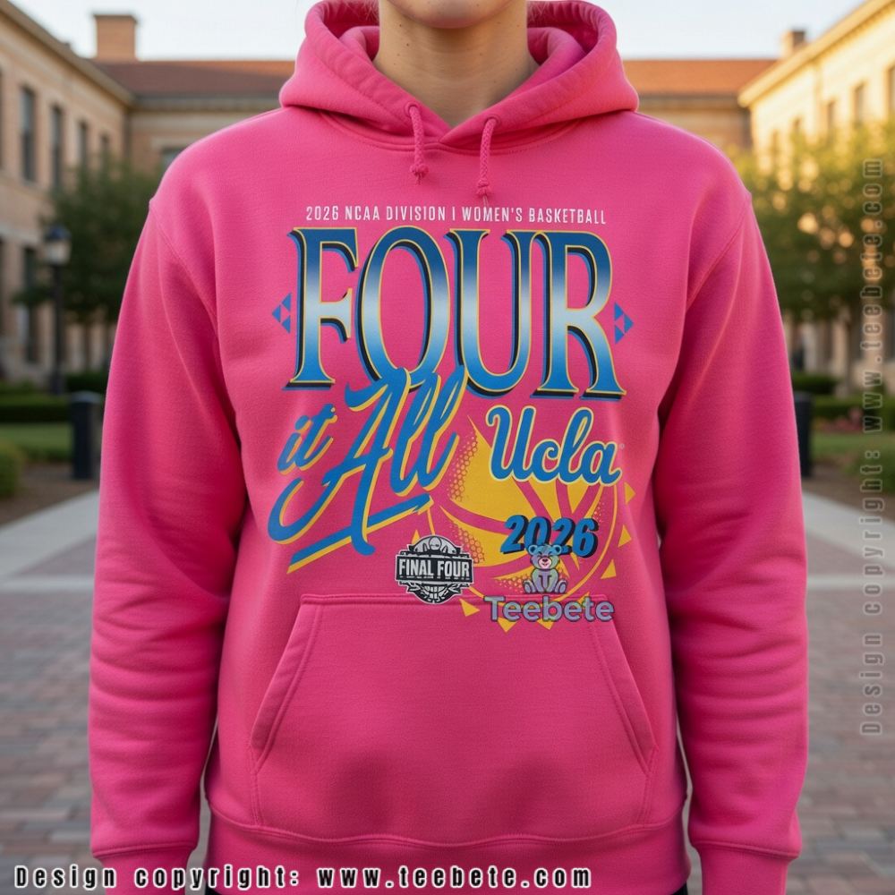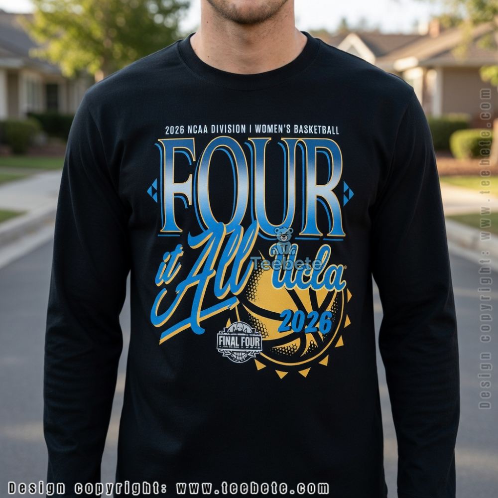 Emblazoned with a dynamic design, this T-Shirt celebrates the spirit of the game with visual elements dedicated to the UCLA Bruins. The 2026 NCAA Women’s Basketball Final Four UCLA Bruins T-Shirt showcases vivid colors that represent the team, creating a striking contrast against a classic backdrop. Illustrative basketball motifs intertwine with typography that expresses passion and excitement, crafted through a full-coverage print that ensures every detail stands out prominently, drawing fans’ eyes from every angle.