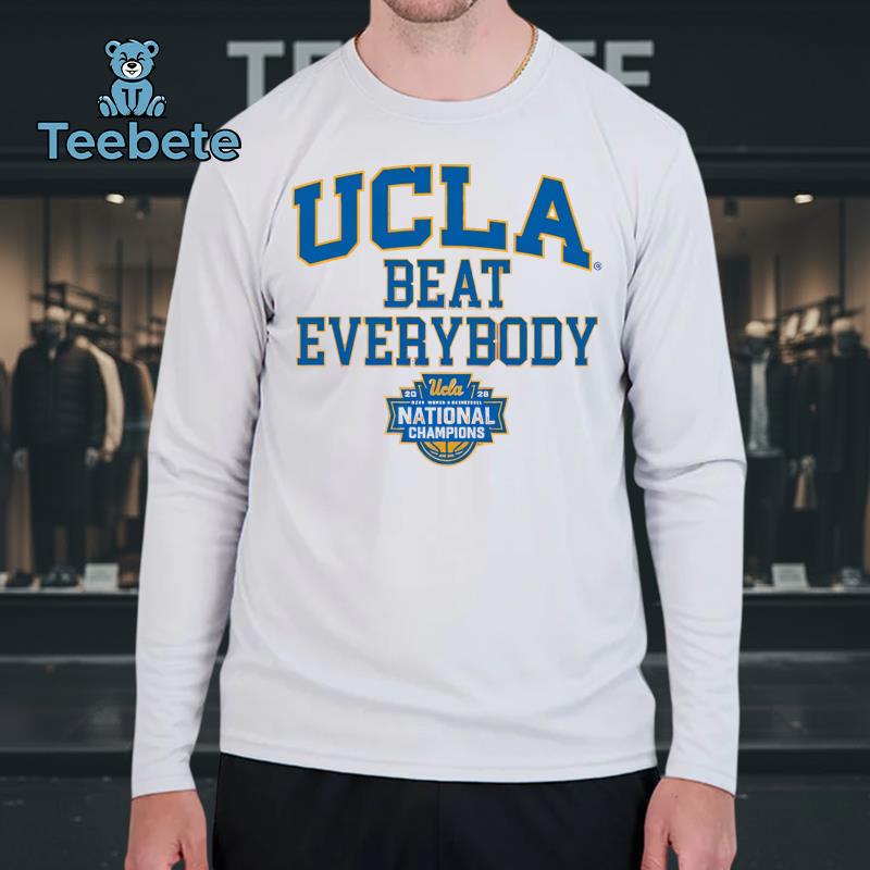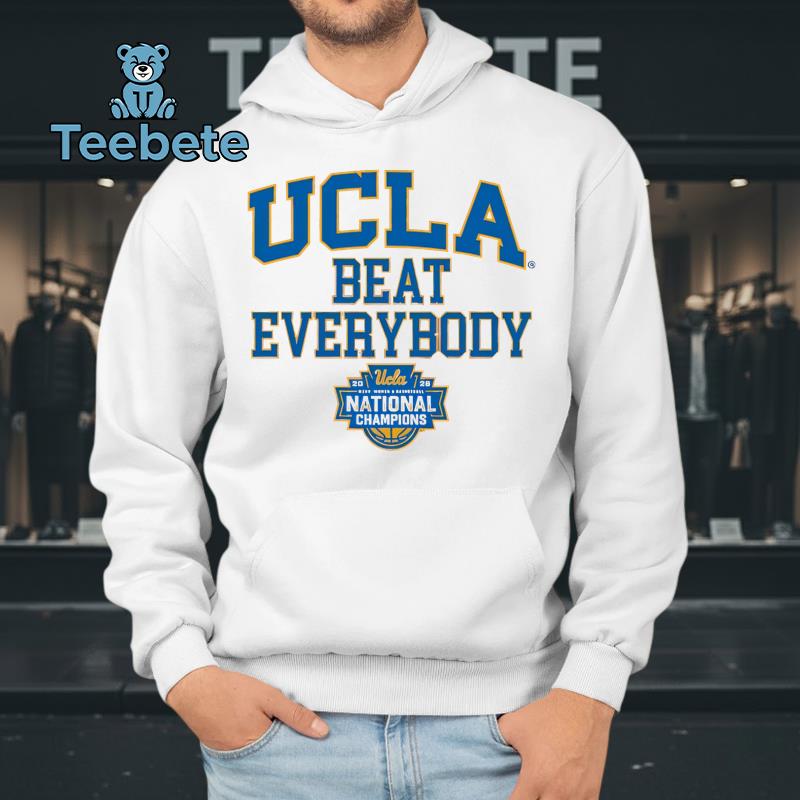 A vivid design wraps around the T-Shirt, showcasing the fierce spirit of the UCLA Bruins with dynamic graphics that celebrate their triumph as 2026 Champions. Prominently displayed is the championship title in bold typography, seamlessly complemented by the iconic Bruins colors—rich blues and golds that evoke a sense of pride and unity among fans. Each element is balanced within a centered graphic composition, creating an impactful visual that stands out during any celebration.