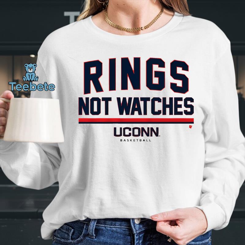 Set against a backdrop of spirited enthusiasm, the design is perfect for cheering at UConn basketball games or showcasing pride in everyday life. A retro aesthetic harmonizes beautifully with contemporary graphics, making it a standout choice for tailgate parties or casual outings with fellow fans. The Basketball Rings UConn Huskies T-Shirt stands apart with its distinctive visual elements that blend tradition and modern flair, catering to fans eager to express their support for the team in style.