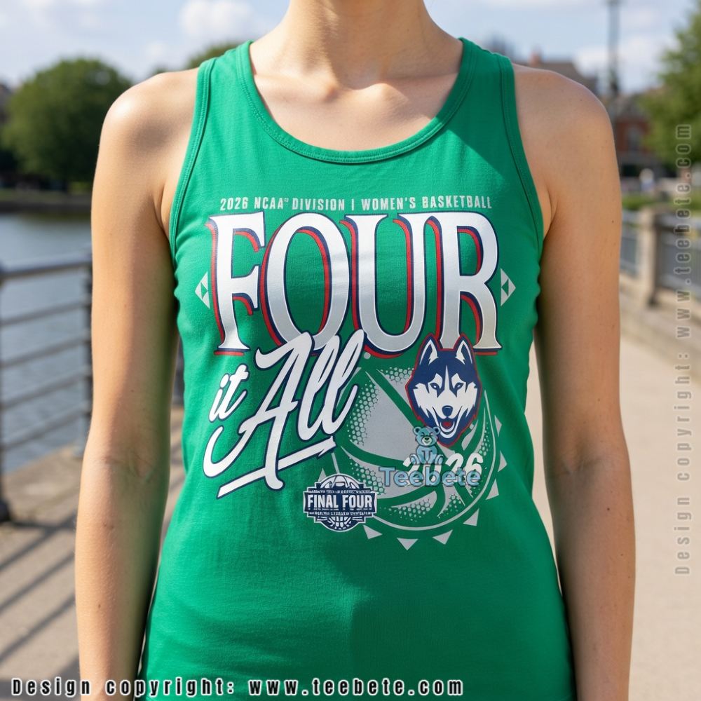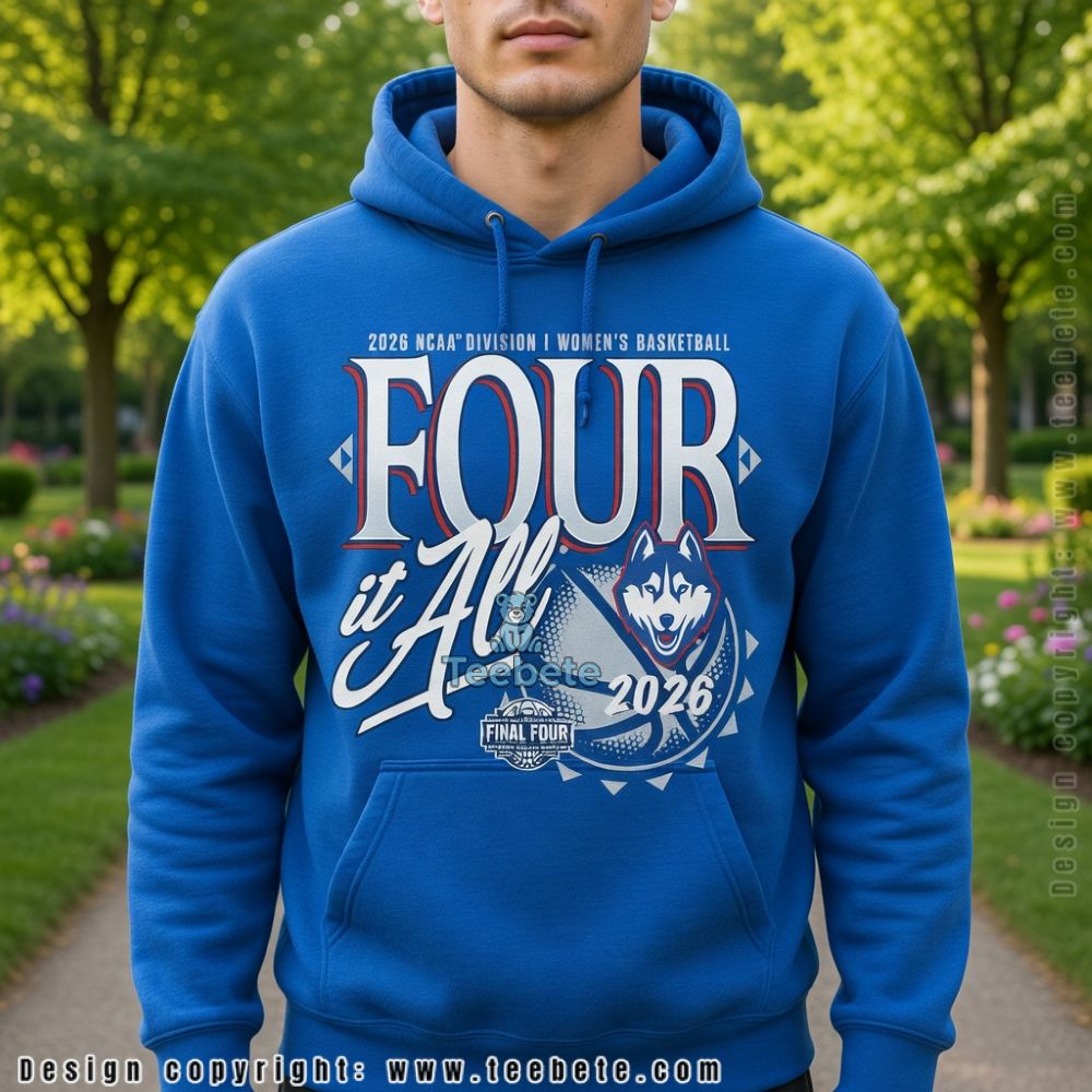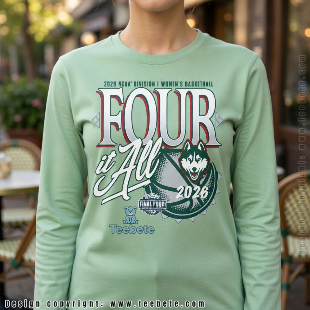 Inspired by the competitive atmosphere of women’s basketball, this design encapsulates the thrill of tournament season. Playful yet fierce, it is perfectly suited for game day celebrations or social gatherings among fellow fans. The energetic theme invites wearers to join the excitement of NCAA Final Four 2026 events, where every cheer and shout adds to the unforgettable experience. Each visual detail makes this T-Shirt distinctive, ensuring that it stands out in any fan’s wardrobe while embodying the heart of UConn basketball.