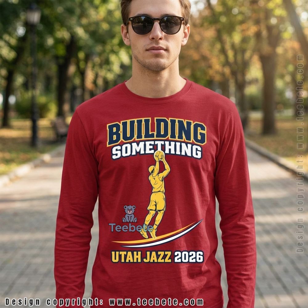A vibrant T-Shirt, the Utah Jazz Shirt 2026 Basketball Fan Rebuild Future features a striking design that captures the essence of team spirit. The layout showcases a dynamic graphic prominently displayed across the front, featuring bold typography and iconic elements that represent the team’s legacy. The color palette harmoniously combines deep blues and bright greens, creating an eye-catching contrast that draws the eye. This design utilizes a full-coverage print technique, ensuring that each detail bursts with clarity and vibrance, making the Utah Jazz Shirt a standout piece for any fan.