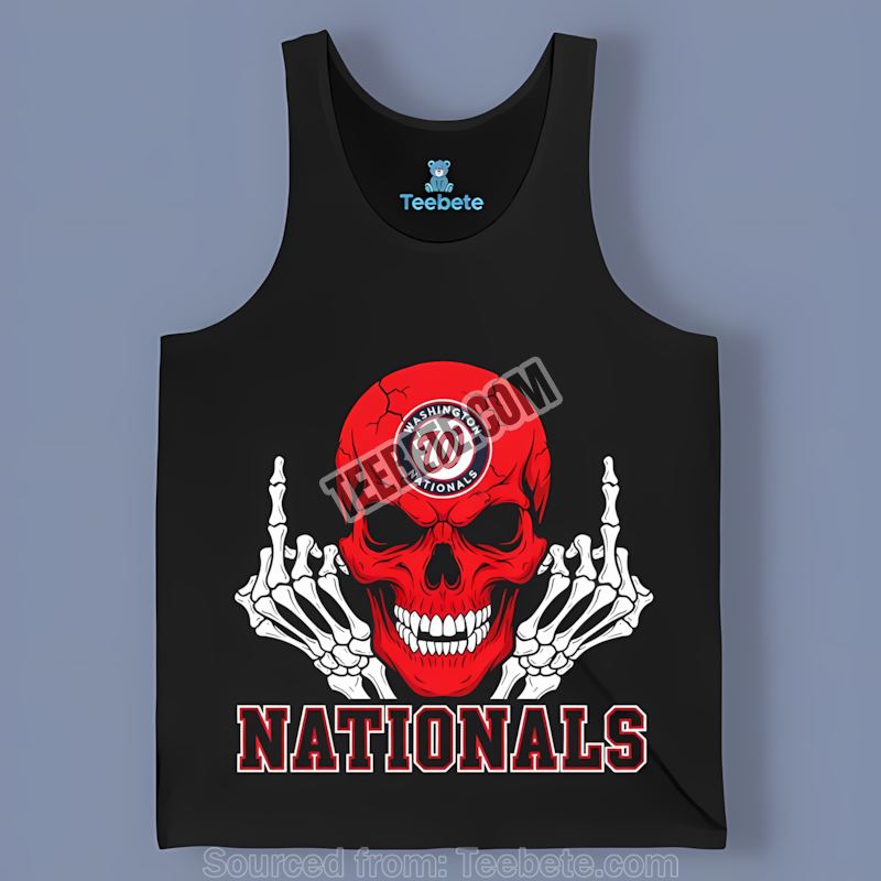 What sets this Washington Nationals novelty shirt apart is its eye-catching graphic design. The skull with a middle finger motif captures attention and makes a bold statement about your loyalty and attitude. Printed with high-quality inks, the design is vibrant and durable, ensuring it remains a standout piece in your collection for years to come.