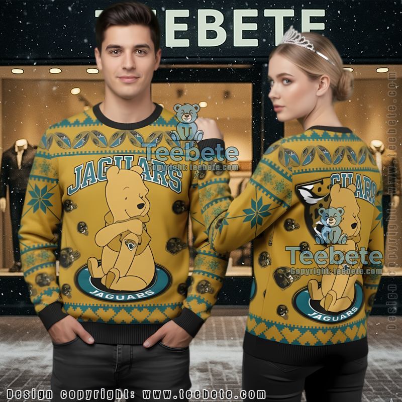 Product information "Jacksonville Jaguars Winnie The Pooh Ugly Christmas Sweater Yellow Vacation"