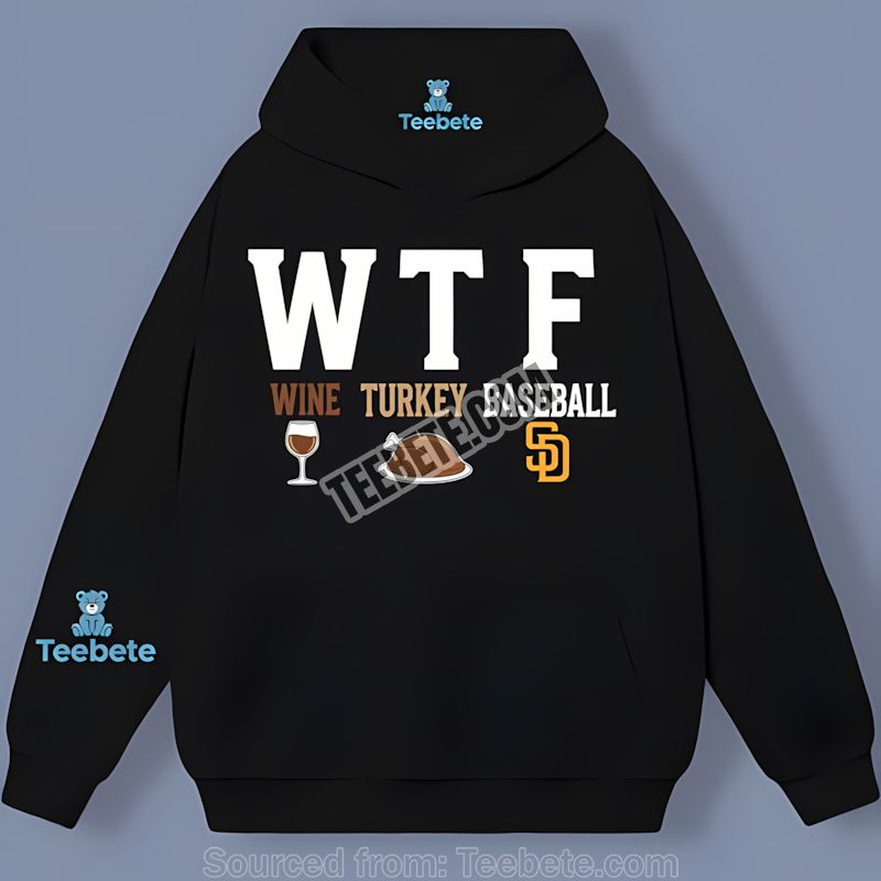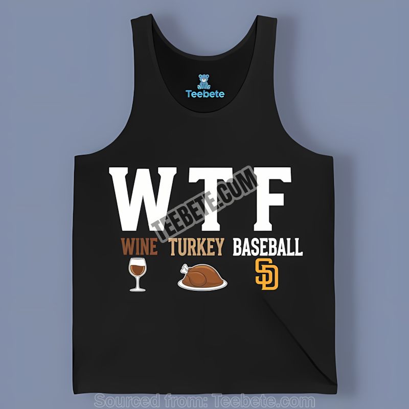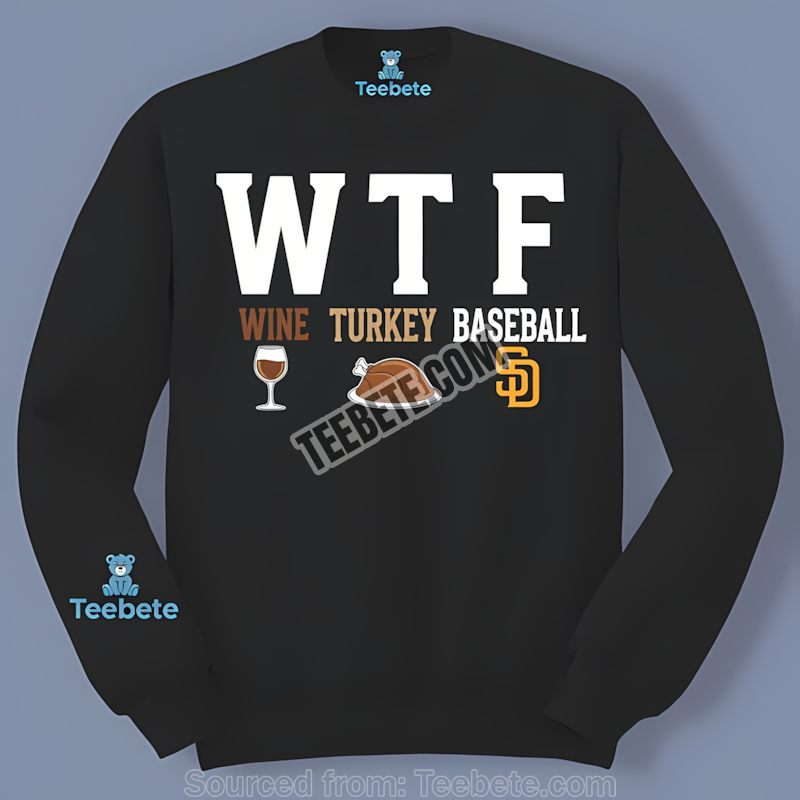 Embrace the quirky spirit of Thanksgiving with this Witty San Diego Padres Wtf Wine Turkey Thanksgiving Graphic Shirt from Teebete. The design playfully combines the beloved San Diego Padres logo with a whimsical wine-loving turkey, perfectly capturing the unexpected humor and festive cheer of the holiday season. It’s the perfect blend of baseball fandom and Thanksgiving traditions, ideal for celebrating with friends and family. This unique design was born from a desire to create apparel that reflects the lighthearted side of the holiday, offering a fun twist on traditional Thanksgiving attire.